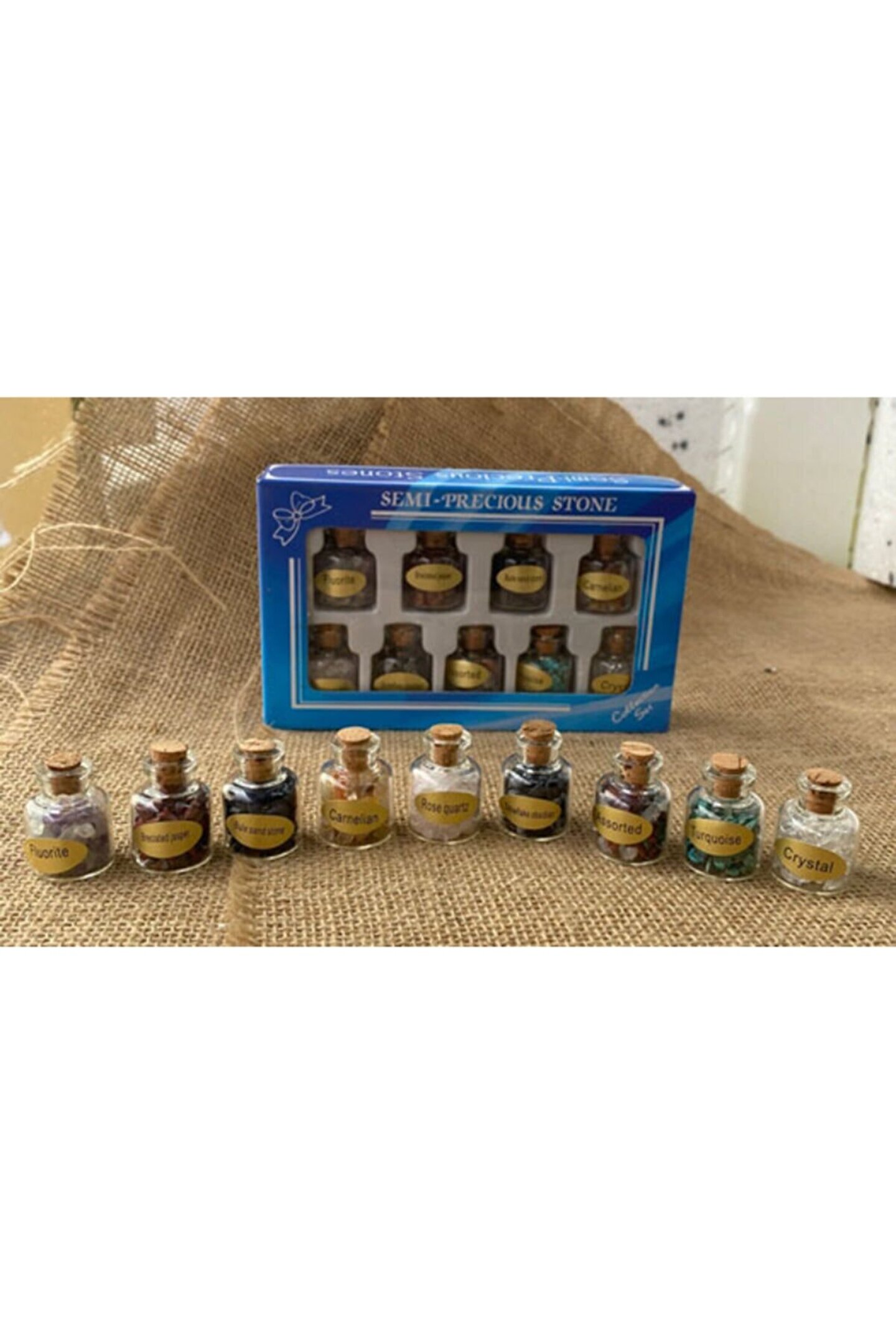 TAŞ: Karışık Kırık Doğal Taş Seti Özellikleri ; İçindeki Taşlar ; Pembe Kuvars,Florit,Ametist,Red Casper,Amazonit,Aventurin,Kristal Kuvars,Kaplangözü,Jasper,Akik İster set olarak ister ayrı ayrı şifalanmak için yanınıza muhafaza edebilirsiniz.Aksesuar olarak kullanıma uyundur. Şifasına göre dilediğiniz kırık taşları yanınızda taşımanızda fayda var. Tavsiye edilen kullanım şekli evin farklı köşelerine koyularak enerjiyi dönüştürüp temizlemesidir. Birlikte kullanıldığında çakraların uyumlu çalışmasını sağlayıp strese iyi gelmektedir. Bulunduğu ortamın negatif enerjisini temizleyip şifa ve ferahlık verir. ÜRÜN:Tüp Şişelerde Kırık Doğal Taşlar ŞEKİL: Doğal Yapı Formu Taşlar KUTU YÜKSEKLİĞİ: 2.5 cm KUTU BOYU: 17 cm KUTU ENİ: 13.5 cm KUTU AĞIRLIĞI : 150 gr Tüm doğal taşlar gibi temizliğini,toprakta,akan suda ya da tuzlu suda bekleterek yapabilir yine dilerseniz mum yada tütsü ile de temizliğini gerçekleştirebilirsiniz. Güneş ışığı da taşların temizliği için kullanılan bir yöntemdir. ;