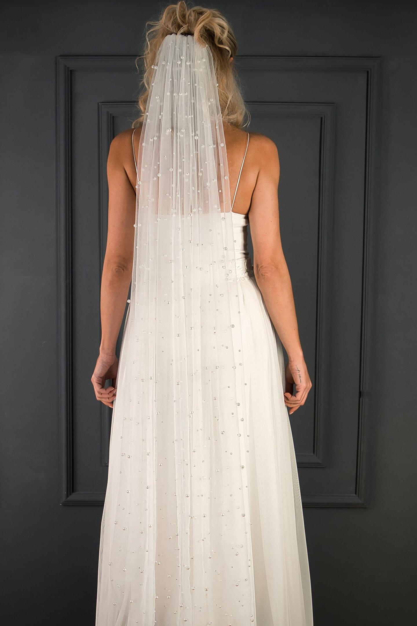 Zarif sim detaylarıyla süslenmiş, kırık beyaz renkli gelin duvağı, özel gününüzde ışıltınızı ön plana çıkarır; İnci işlemeleri ile zenginleştirilmiş bu gelin duvağı, şıklığınızı tamamlayacak zarif bir dokunuş sunar; Simli modeli sayesinde, gelinliğinizin üzerine ekstra bir ışıltı katarken, göz alıcı bir görünüm sağlar; Kırık beyaz rengiyle klasik ve zamansız bir tercih yaparak, her türlü gelinlik modeliyle uyum içinde olmanızı sağlar;