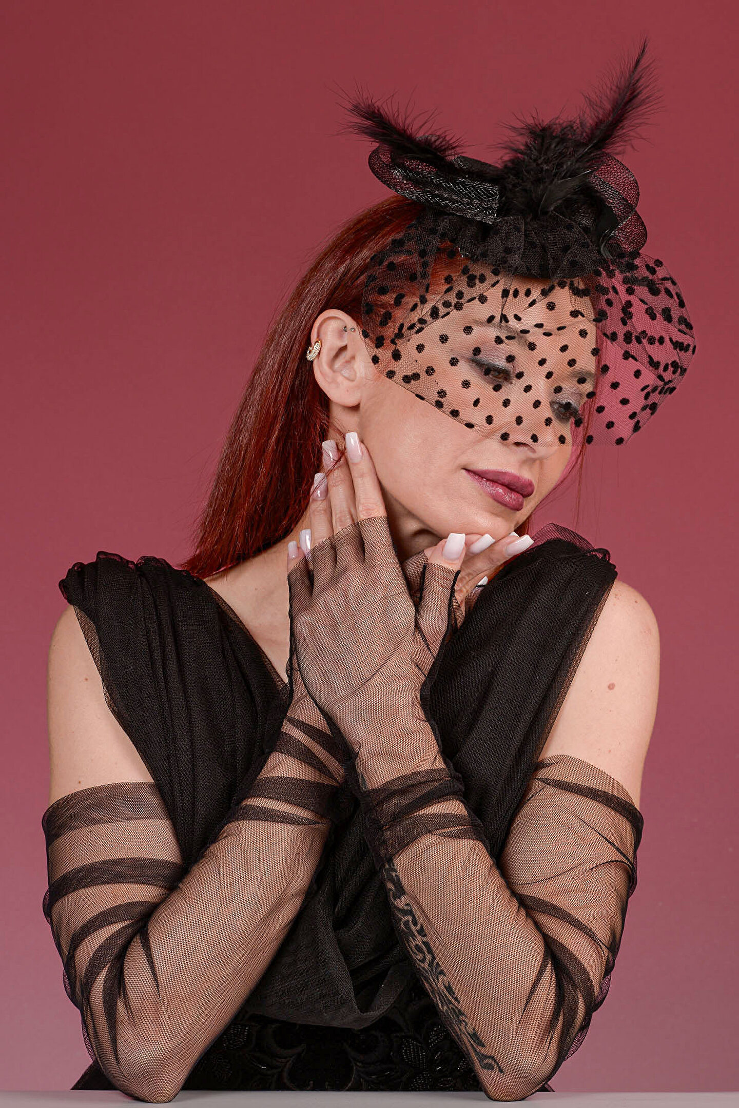 - Zarif siyah puantiyelerle süslenmiş, gelinlerin şıklığını tamamlayacak nikah şapkası.; - Uzun tül kesik parmaklı eldiven seti ile elbisenizin zarafetine uyum sağlar.; - Kuru temizleme önerisiyle kolay bakım imkanı sunar; böylece özel gününüzdeki görünümünüzü koruyabilirsiniz. - Siyah rengiyle zamansız bir şıklık sunarak her türlü gelinlikle mükemmel uyum sağlar.
