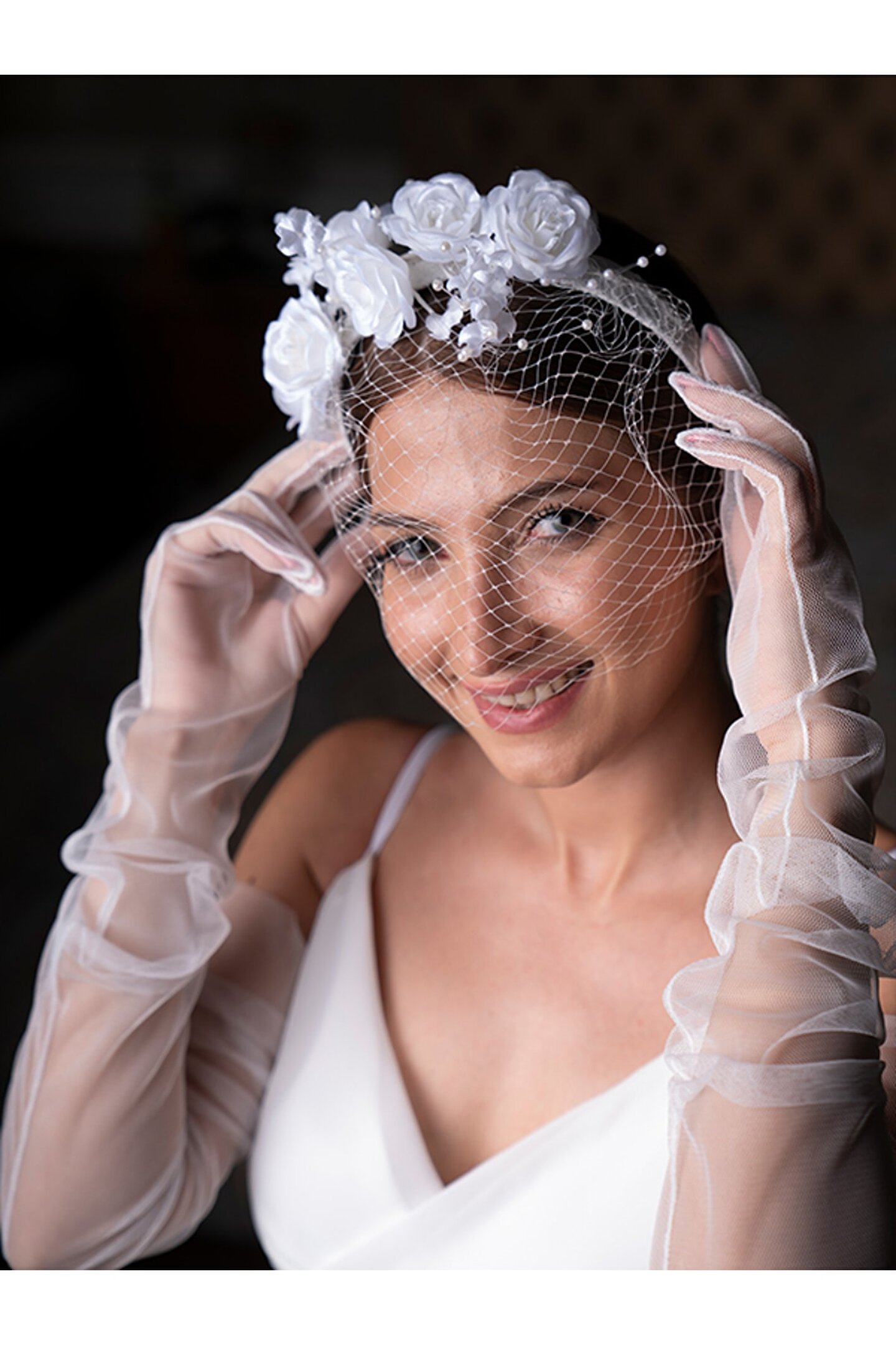 Gençlerin zarif ve şık görünümünü tamamlayan uzun beyaz tül gelinlik eldiveni, özel günlerdeki şıklığınızı artırır; Zarif tül detayları ile süslenmiş bu eldivenler, gelinliklerinize romantik bir dokunuş katarken, gençlerin tarzını yansıtır; Her yaş grubuna hitap eden bu eldivenler, gençlerin düğün hazırlıklarında vazgeçilmez bir aksesuar olarak öne çıkar;