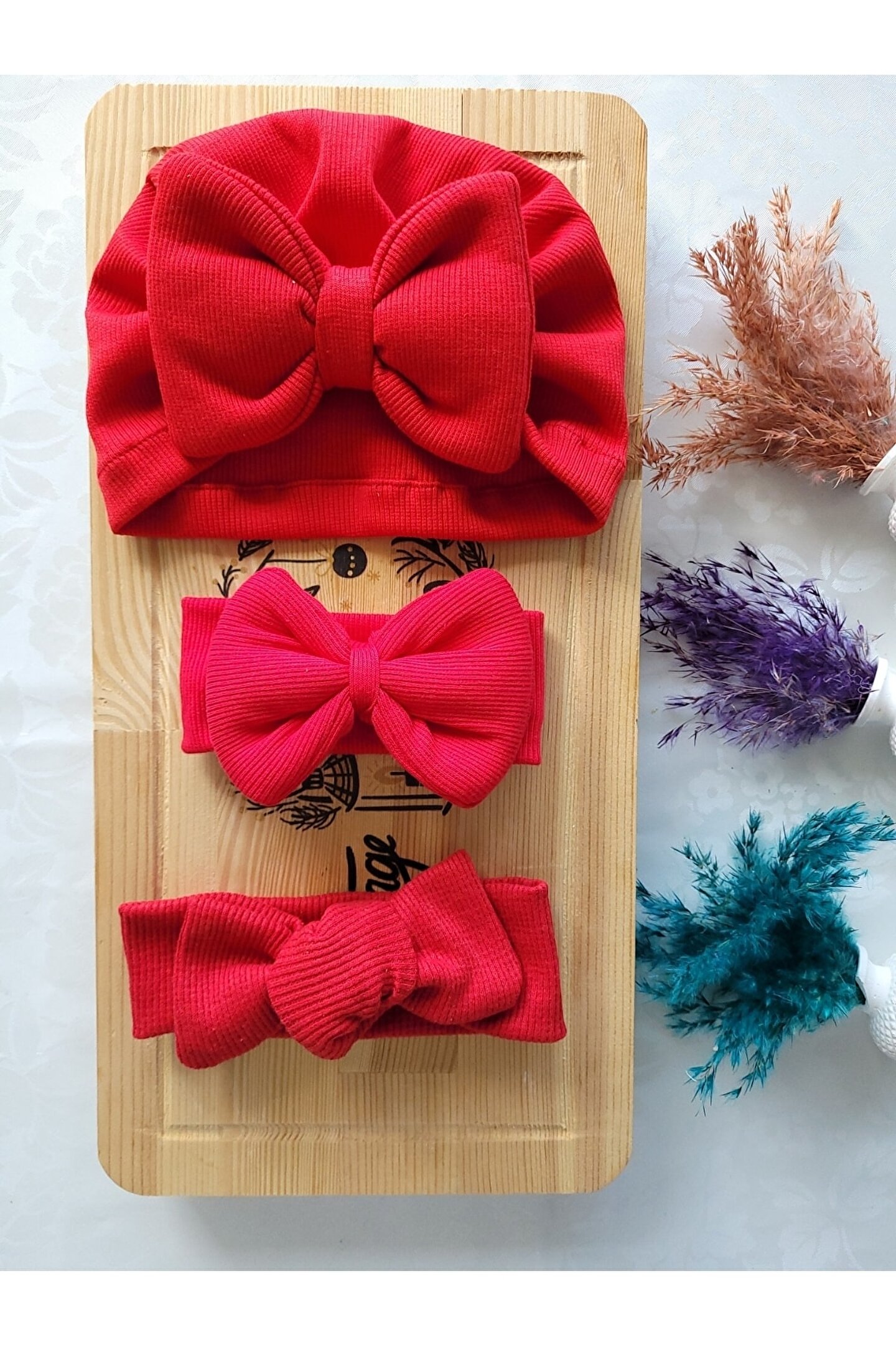 Kız Bebek & Çocuk Fiyonklu Bone & Bandana Set
