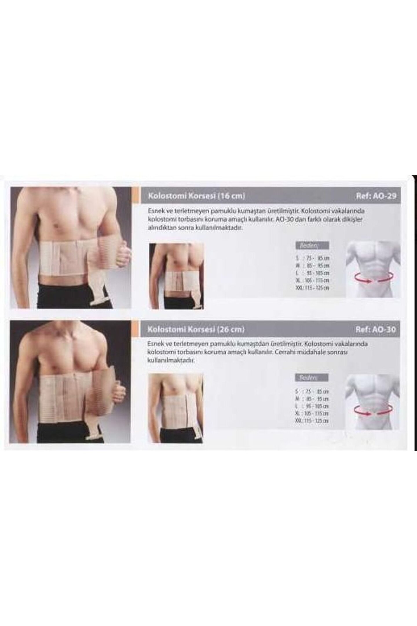 Kolostomi Korsesi 26 Cm Bel Çevresi 70-80 Cm Kolostomi Korsesi 26 Cm kolostomi korsesi Esnek ve terletmeyen pamuklu kumaştan üretilmiştir. ; Kolostomi vakalarında kolostomi torbasını koruma amaçlı kullanılır. ; AO-30 dan farklı olarak dikişler alındıktan sonra kullanılmaktadır. ; Cerrahi müdahale sonrası kullanılmaktadır. ; Kolostomili, Ürostomili ve İleostomi adaprü kullananlar için ideal, hem korse özelliği hemde adaptöre uyguladığı baskı nedeniyle cilt üzerinde rahat tutunmasını sağlar. ; Torba gizleme özelliği ilede tercih sebeblerindendir.;