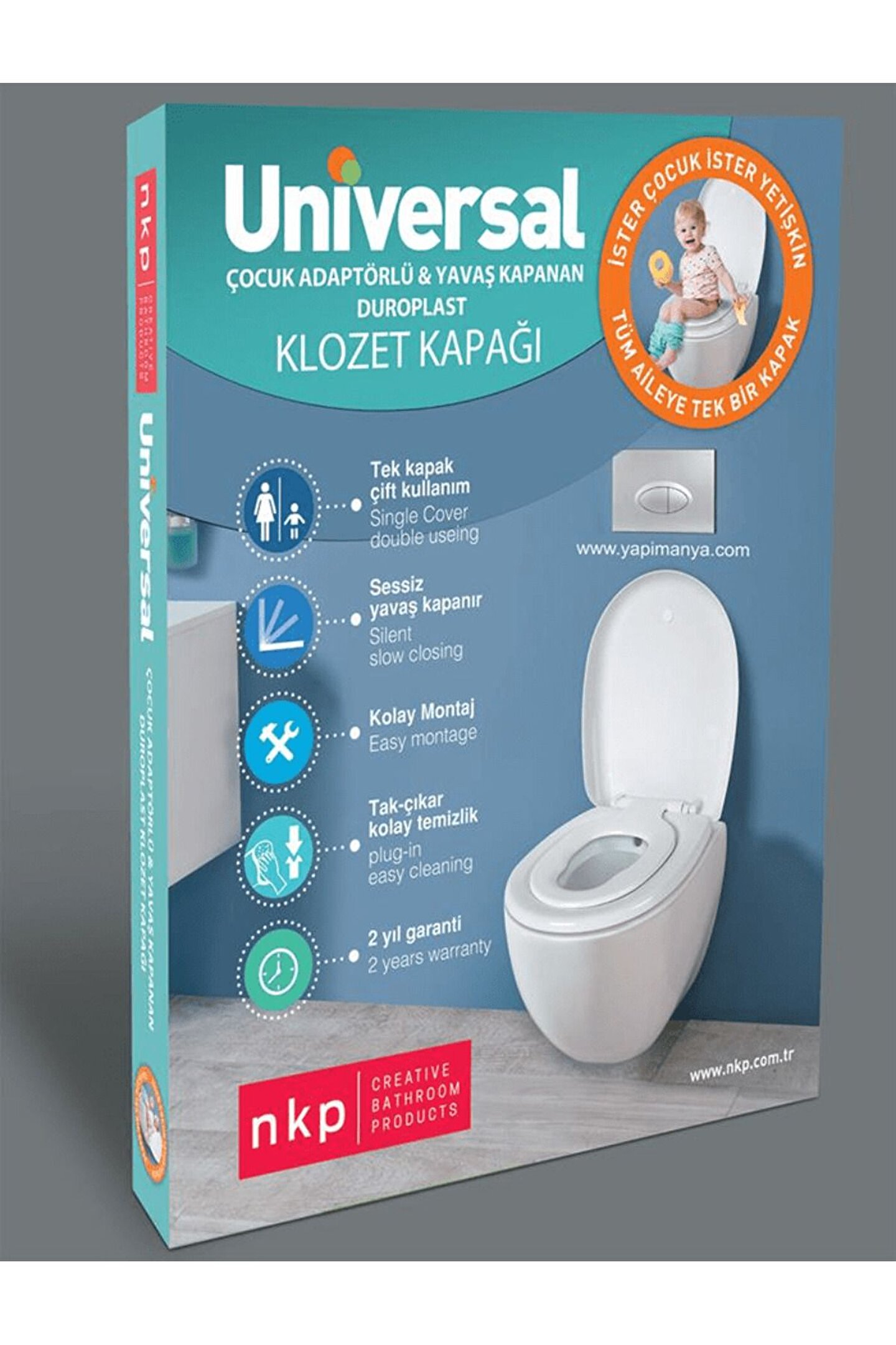 Nkp Universal Çocuk Adaptörlü Yavaş Kapanır Klozet Kapağı Tek Kapak - Çift Kullanım Sessiz Yavaş Kapanır Kolay Montaj Tak - Çıkar Kolay Temizlik