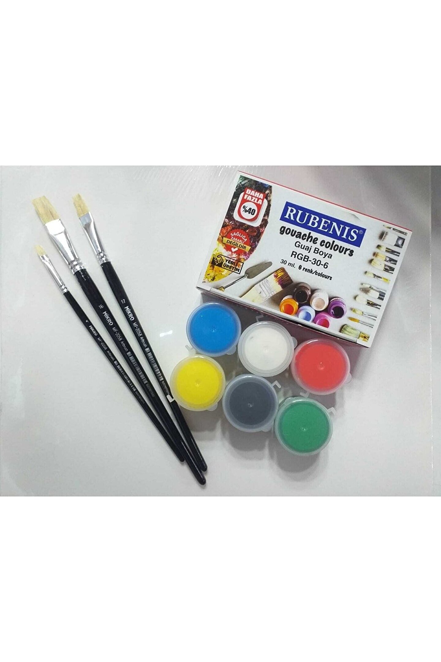 1 adet 25*35 tuval 6 lı rubenis marka guaj boya 3 adet fırça