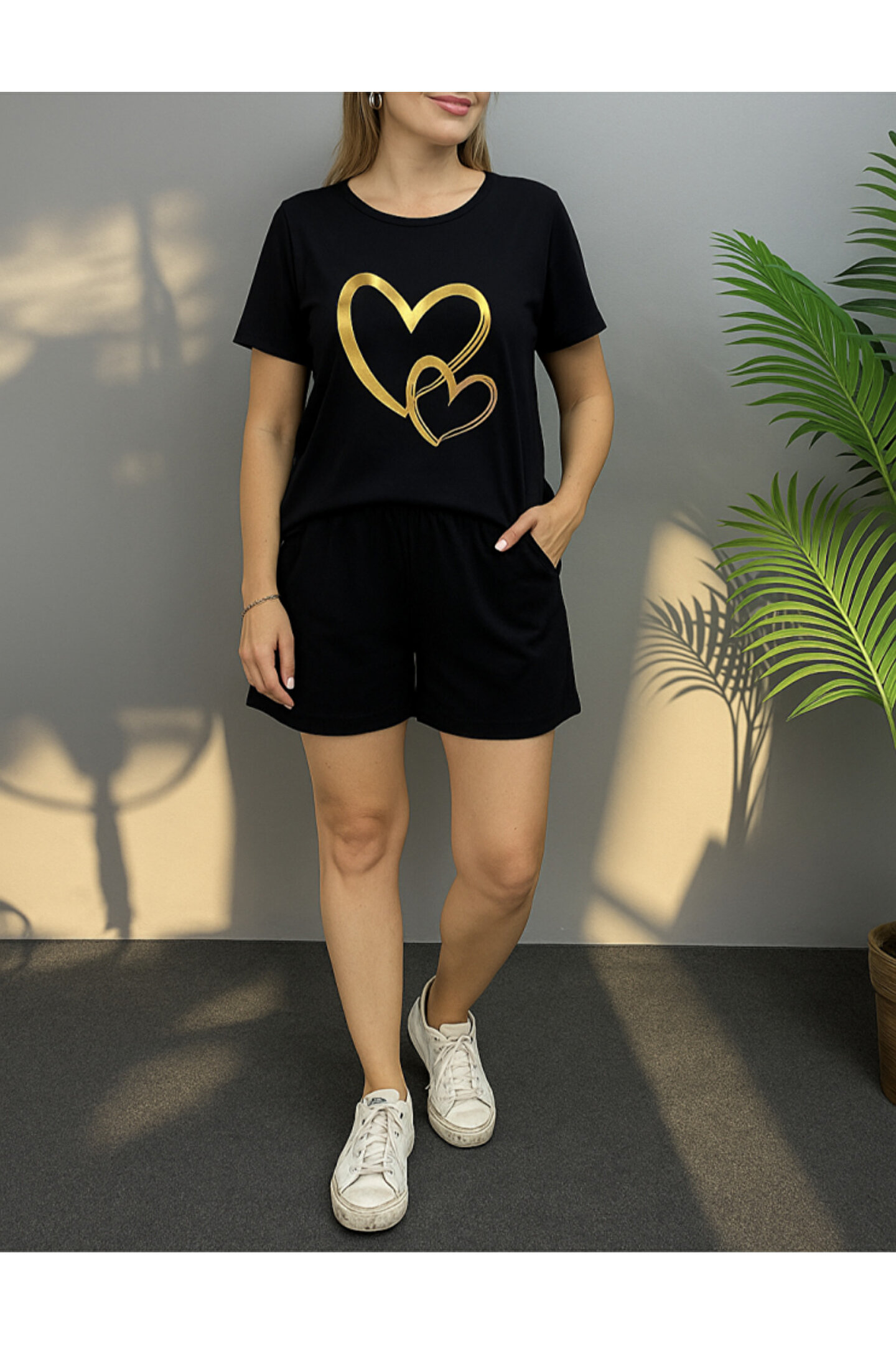 Kadın Kısa Kollu Bisiklet Yaka Viskon Iki Iplik Bluz Ve Short Ikili Takım