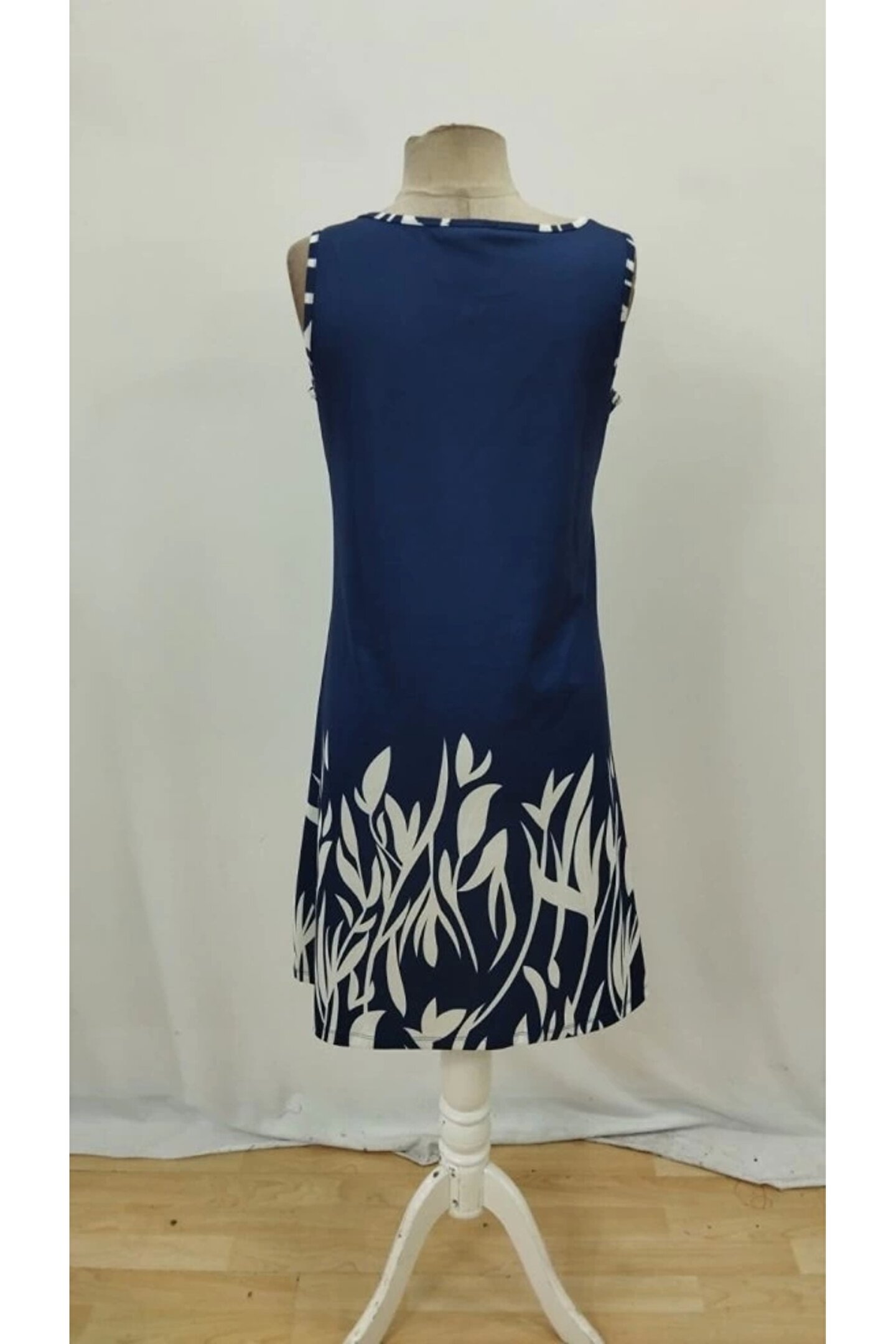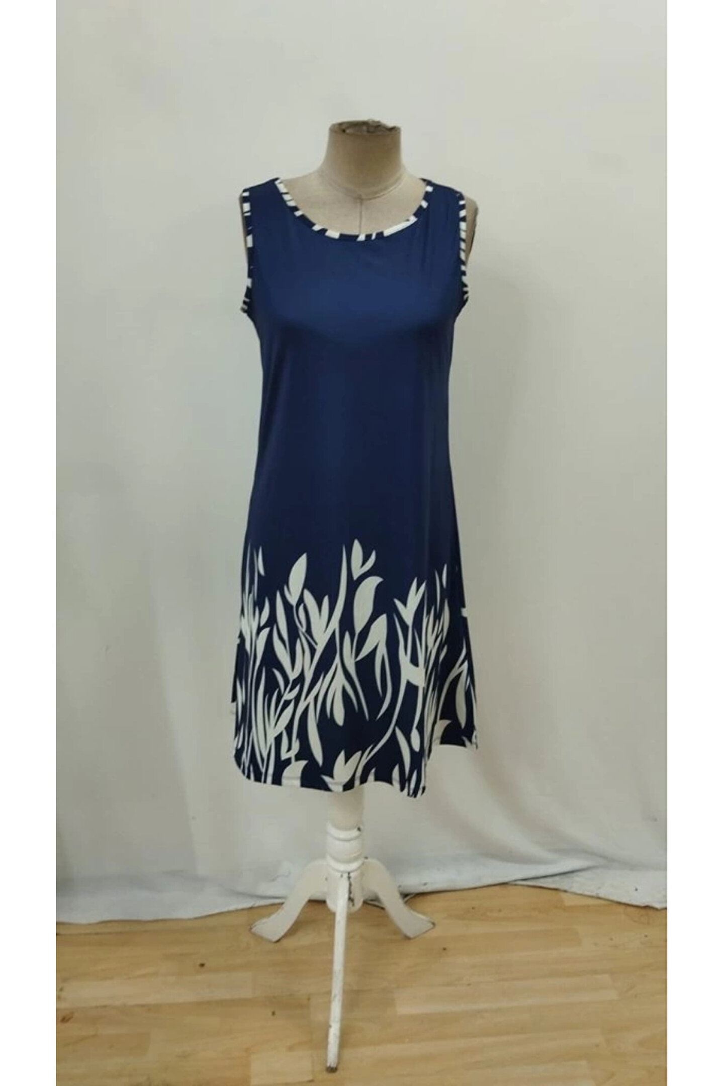 Serero Kadın Askılı Yuvarlak Yakalı Yaprak Desenli Dalgıç Elbise