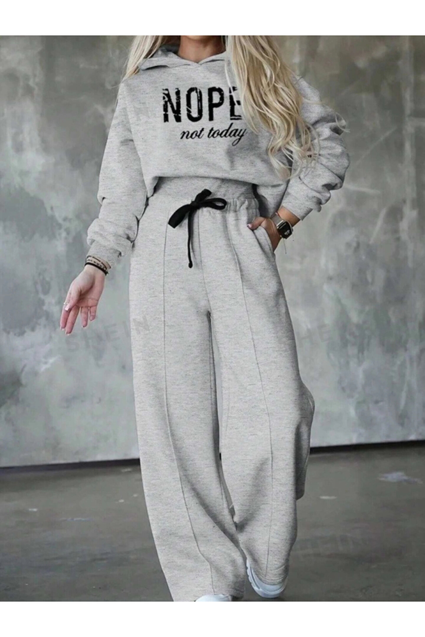 Kadın Uzun Kollu Nope Baskılı Beli Ribanalı Ikili Takım