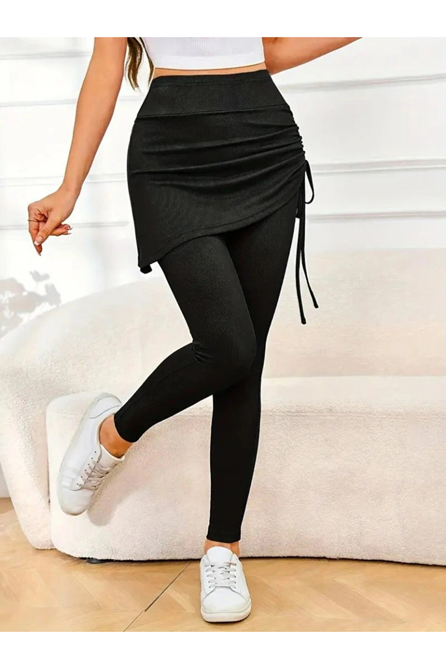 Serero Kadın Yüksek Bel Yandan Büzgülü Alttan Uzun Kaşkorse Tayt Etek
