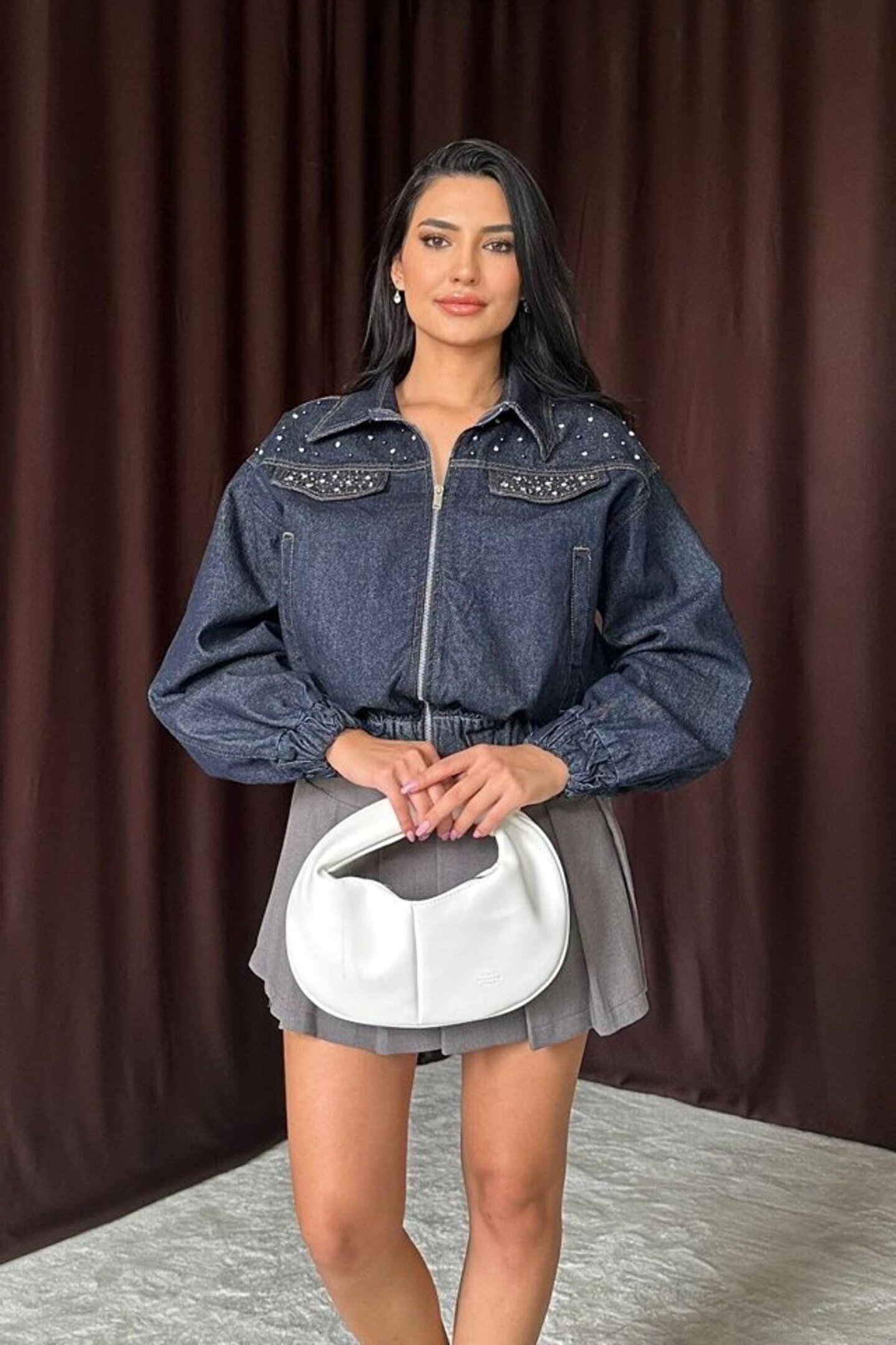 Serero Mavi Taşlı Kısa Kot Ceket