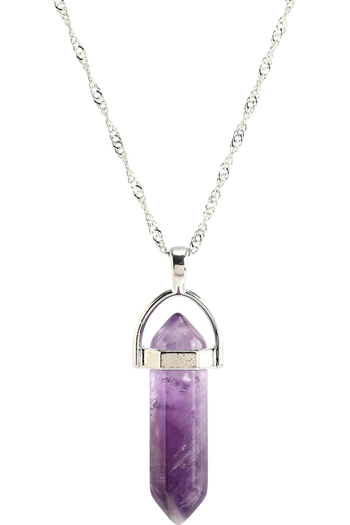 Gençlerin enerjisini ve stilini yansıtan doğal ametist taşı, her yaştan kullanıcıya hitap eder; Doğal taş kullanımı sayesinde, her kolye benzersiz ve otantik bir görünüm sunar; Taş materyali ile hem dayanıklılık hem de şıklığı bir arada barındırır, uzun süreli kullanım için idealdir;
