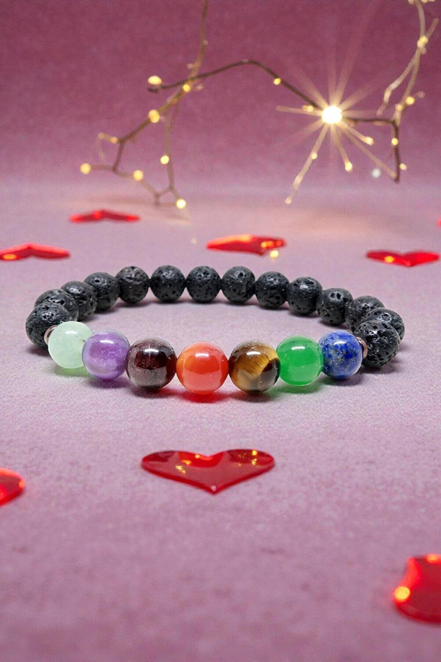 SEZAİDOGALTAS Doğaltaş Yedi Çakra Doğal Taşlı Bileklik
