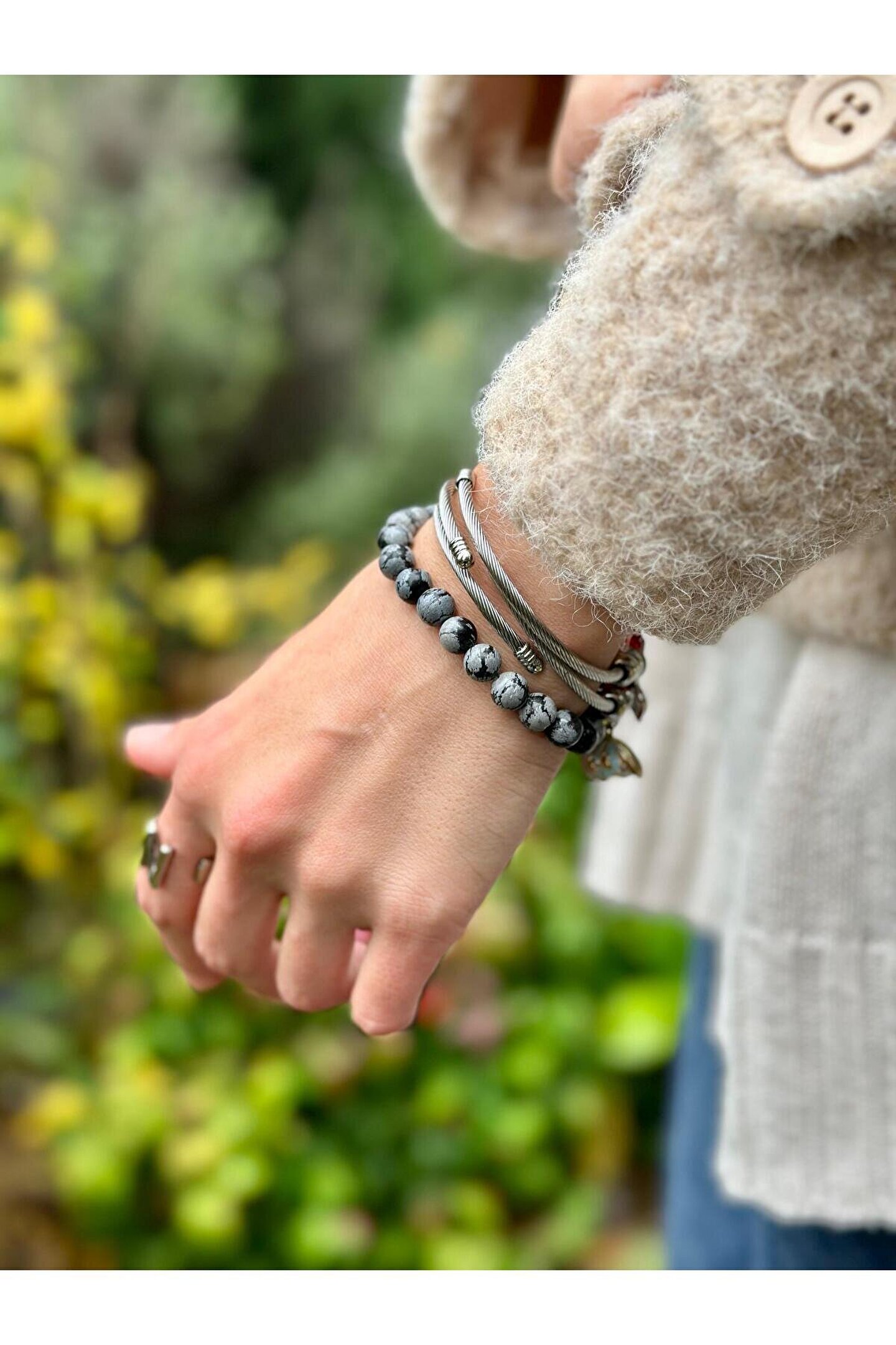 sezaiiletişim 8 Mm Karlı Obsidyen Taşı Erkek Kadın Doğal Taş Bileklik A Kalite