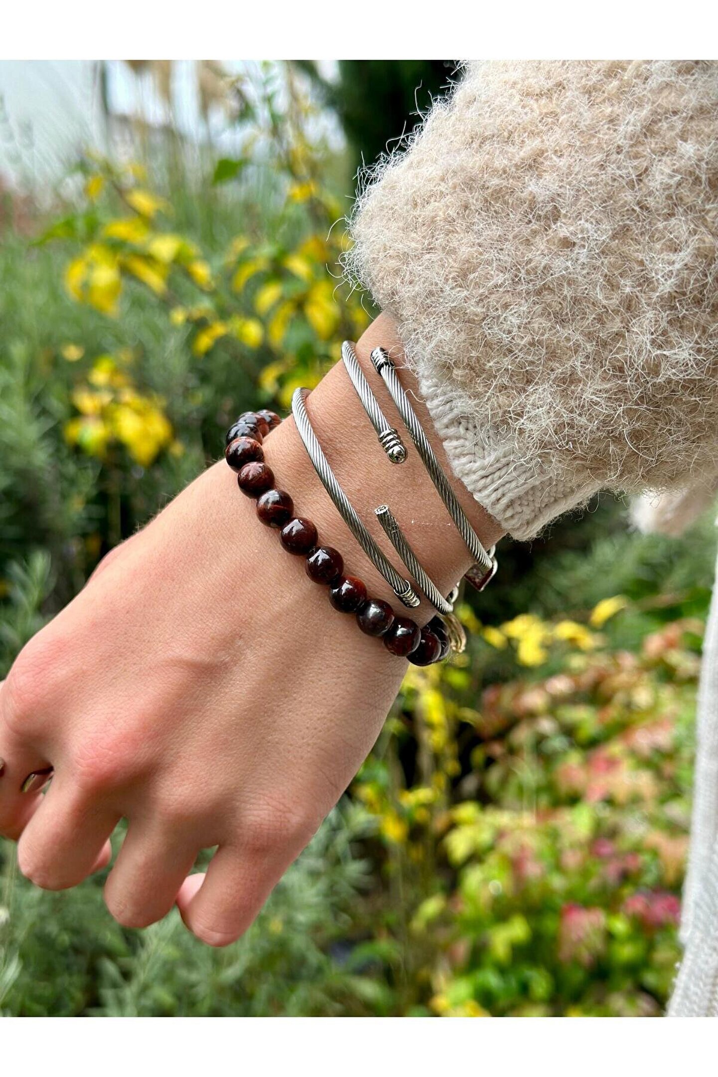 sezaiiletişim 8 Mm Kırmızı Kaplan Gözü Taşı Erkek Kadın Doğal Taş Bileklik A Kalite