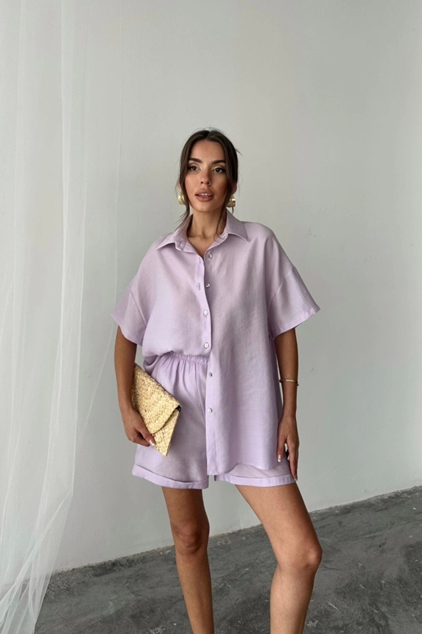 SGM BUTİK GÖMLEK - ŞORT TAKIM - Lila