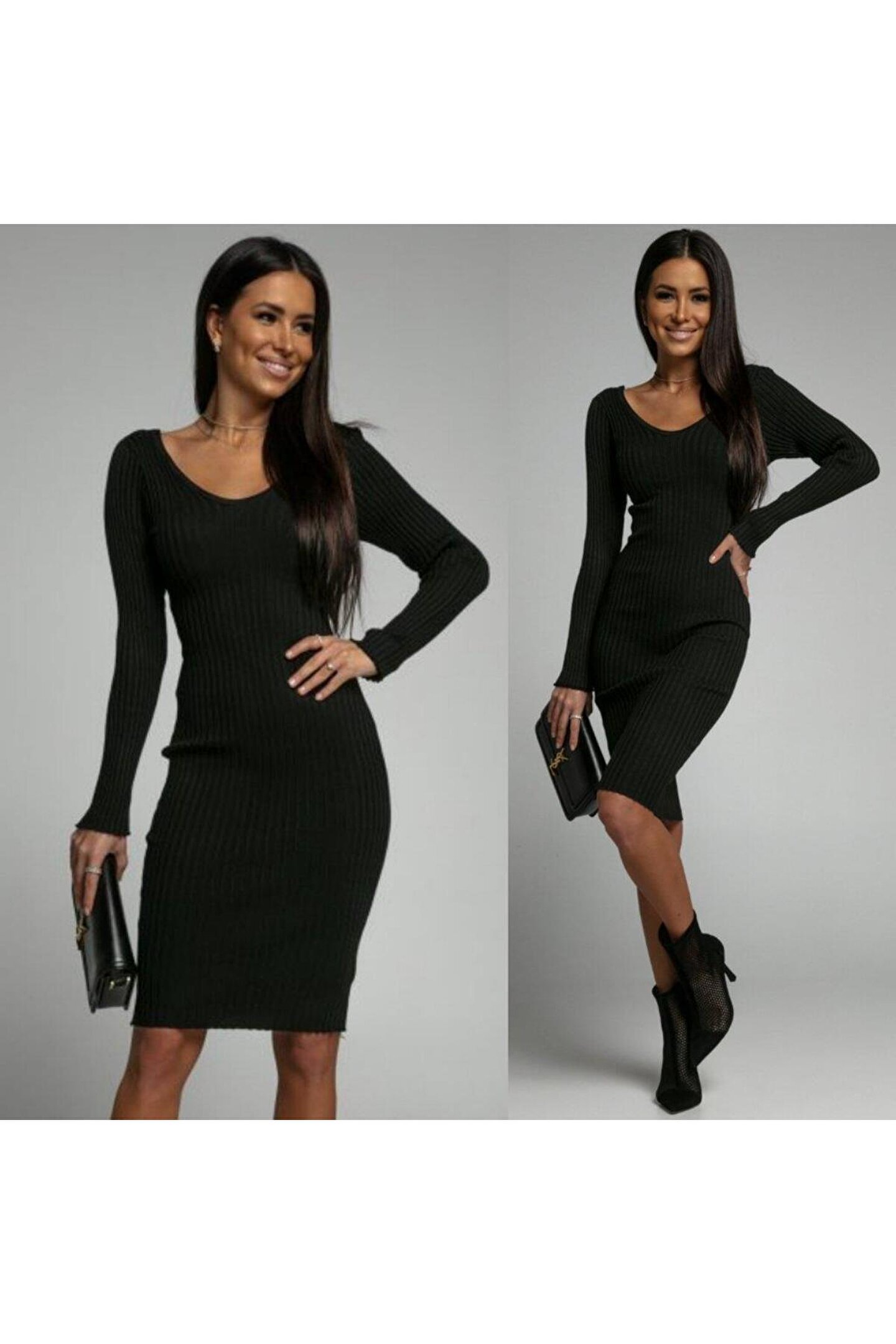 SGM BUTİK Kadın Uzun Kollu V Yaka Triko Elbise