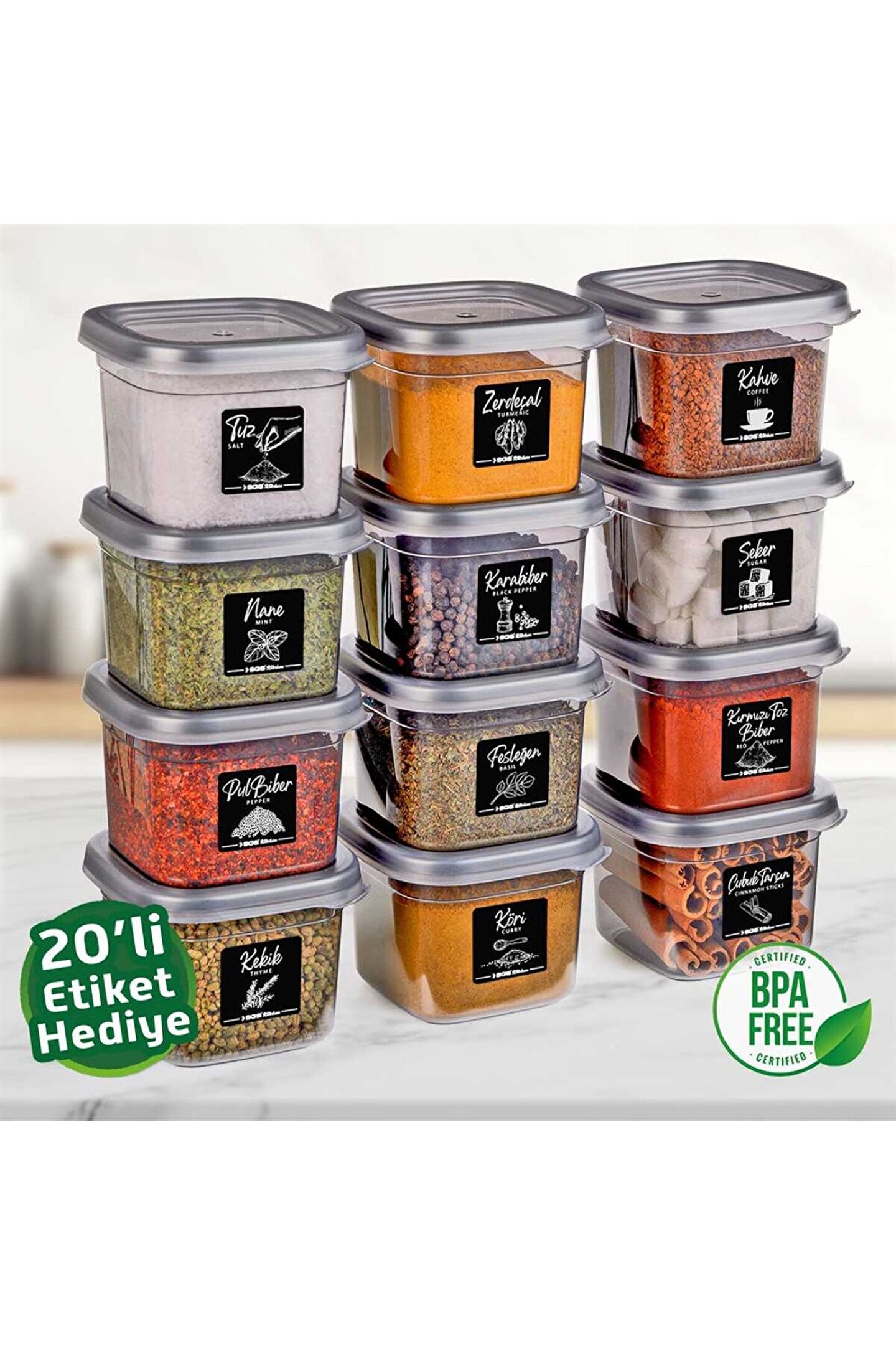 -ürün rengi antrasittir.; Türkiye'de üretilen bu saklama kabı, dayanıklı akrilik materyalden üretilmiştir ve uzun ömürlü kullanım sunar.; - 12 parçadan oluşan set halinde sunulan bu ürün, mutfakta ihtiyaç duyulan düzeni kolayca sağlar.; - Geniş hacmiyle 550 ml kapasitesiyle çeşitli mutfak malzemelerini rahatça saklamanız için idealdir.