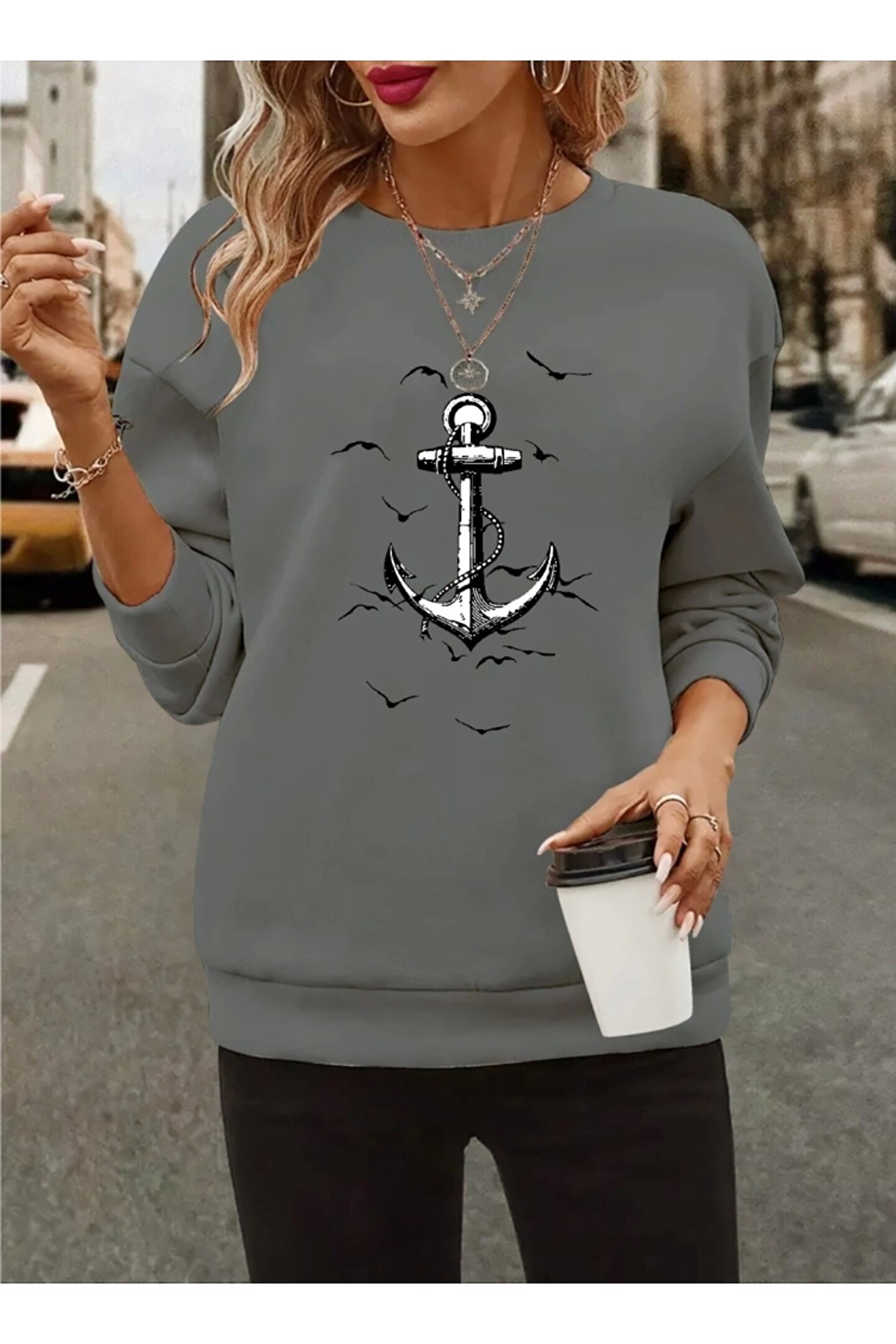 Kadın Uzun Kollu Bisiklet Yaka Desenli Viskon Iki Iplik Bluz