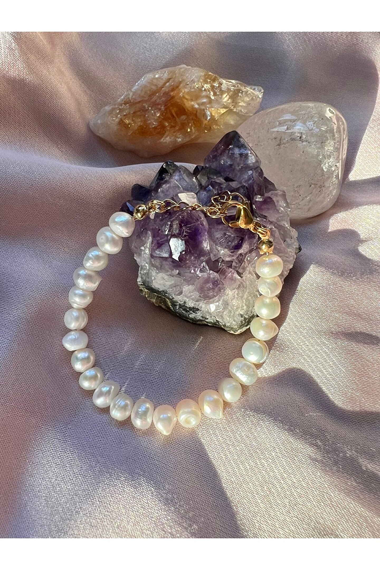 Doğal kültür (tatlı su) incisidir.; İnci taneleri 6-7 mm boyutundadır.; Kullanılan malzeme çeliktir.; Bileklik uzunluğu 17 + 3 cm zincir payı olacak şekildedir.; Arpa inciden hazırlanmasını isterseniz sipariş numaranızı iletiniz.; Görsel ŞİFA SHOP mağazasına aittir.