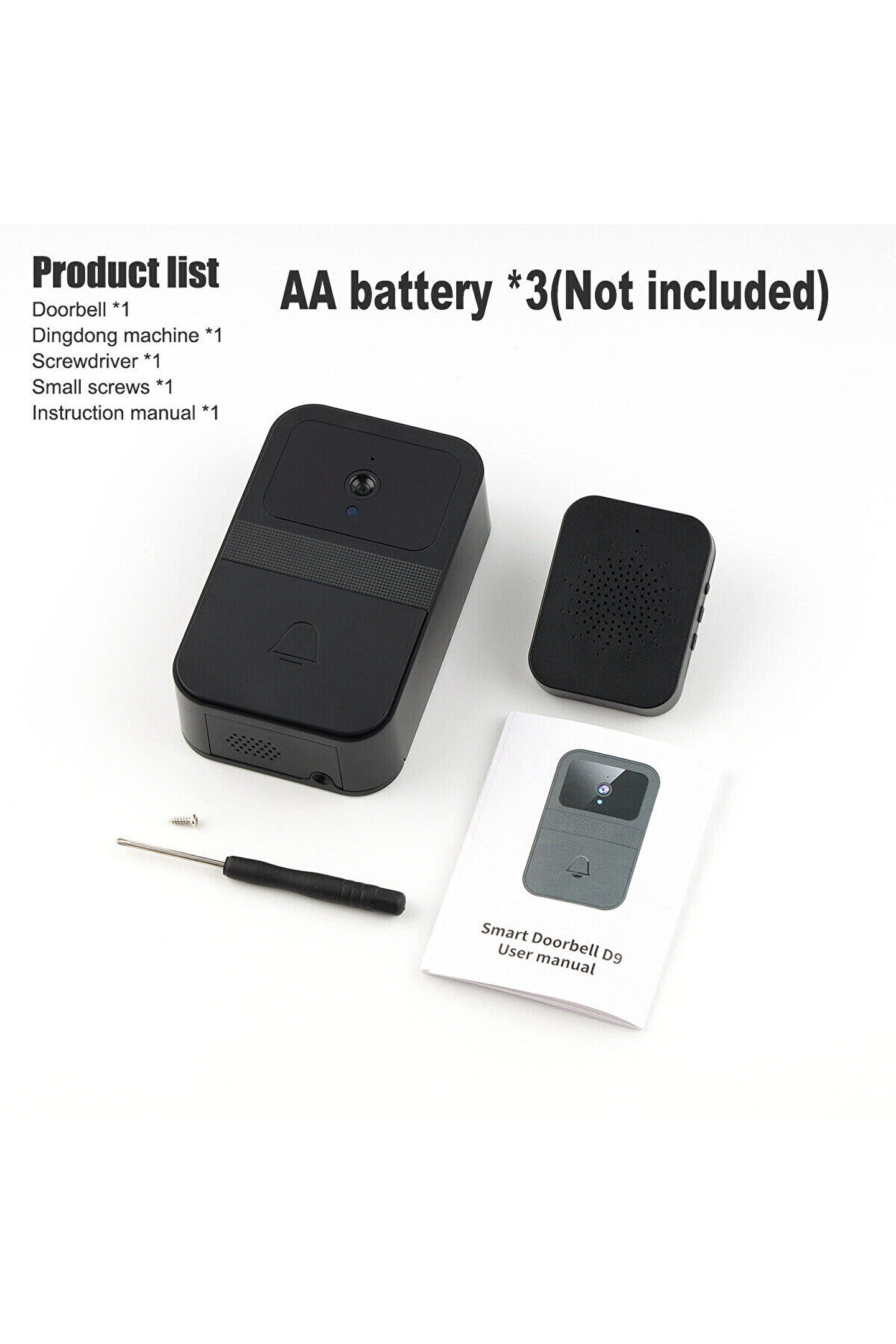 1. ; Süper uzun bekleme süresi.2. ; Dahili şarj edilebilir pil3. ; Ses değişimini, kadın seslerinin erkek sesine dönüşmesini destekleyin4. ; Uygun kurulum, yapıştırılabilir, delinebiliradı: Görsel akıllı kapı zilipil kapasitesi: 800magüç girişi: 5v=2akullanım süresi: 6 aydan fazla normal kullanımşarj süresi: 1,5 saatinterkom tipi: Renkli görselöğe türü: Görüntülü kapı zilisiyah renkmalzeme: Plastikpaket içeriği:1 x kablosuz görüntülü kapı zili1 x ding;