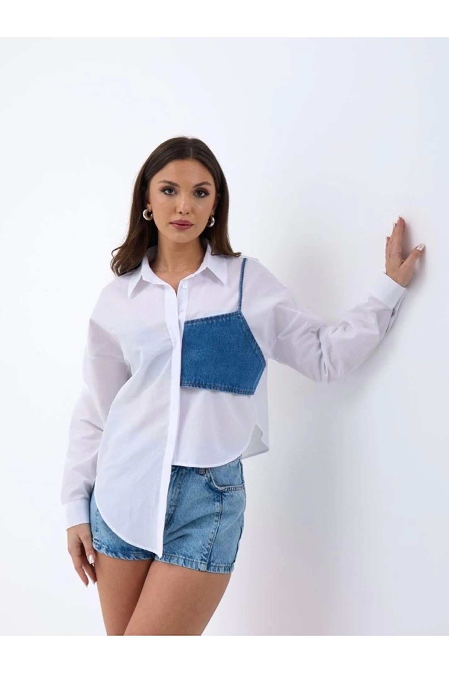 5419 GÖMLEK-MAVİ CEPLİ BEYAZ