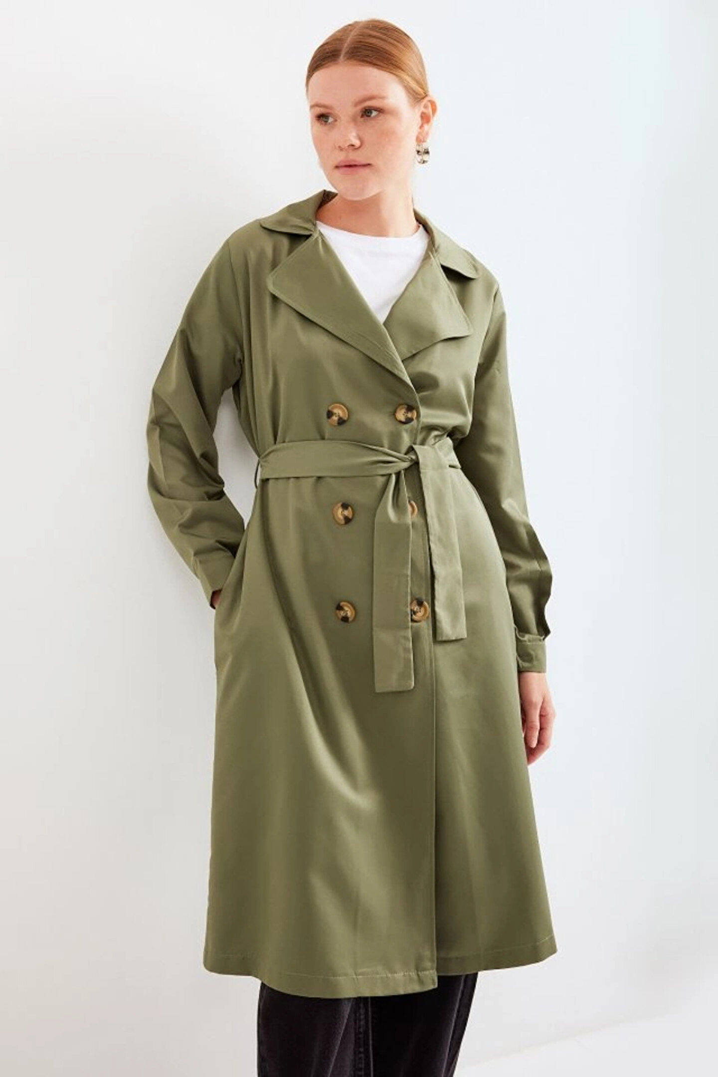 Silerra 5853 Kruvaze Yaka Trençkot - Haki