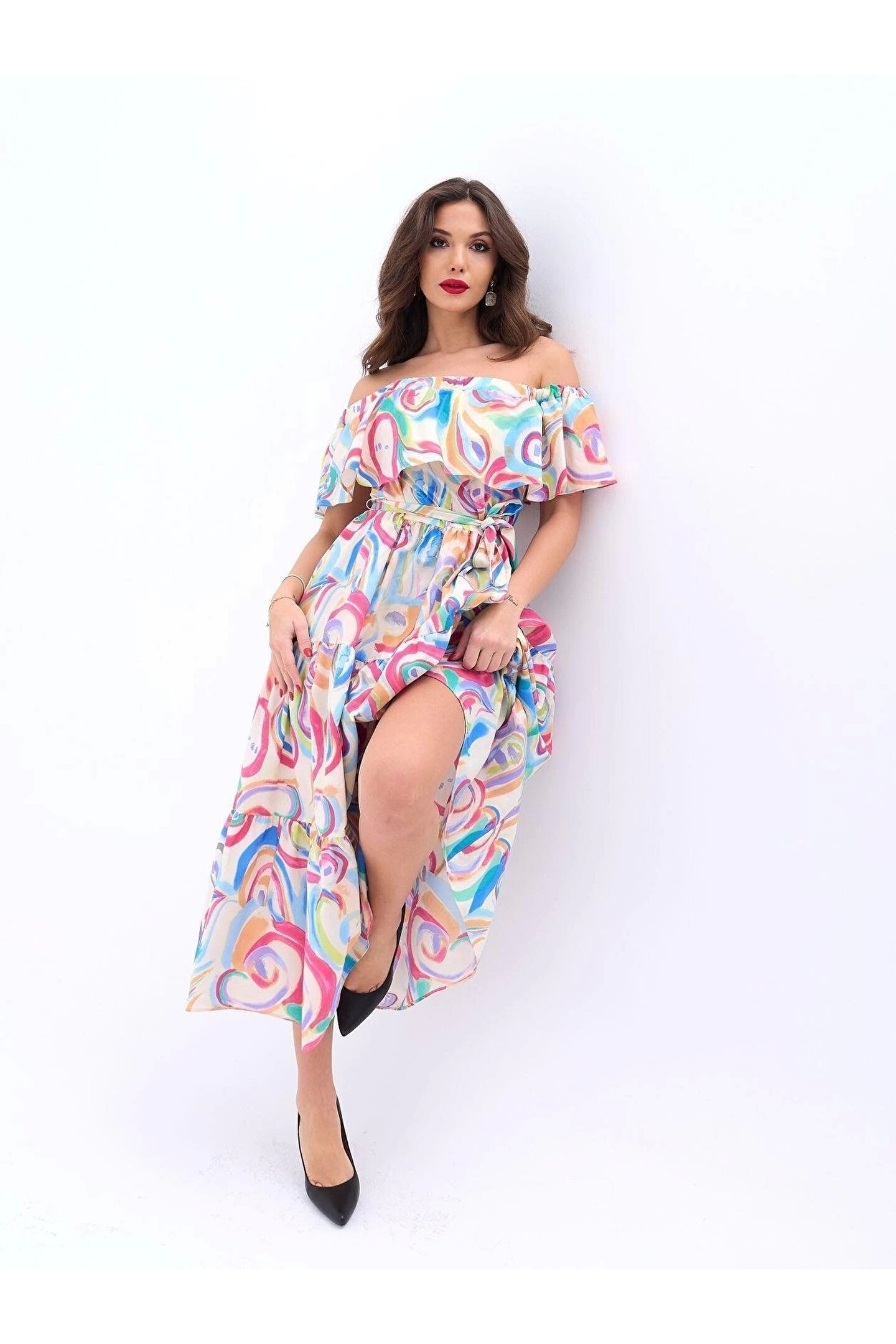 Modelin Ölçüleri: Boy:165, Kg:55, Göğüs:90, Bel:72, Kalça: 100