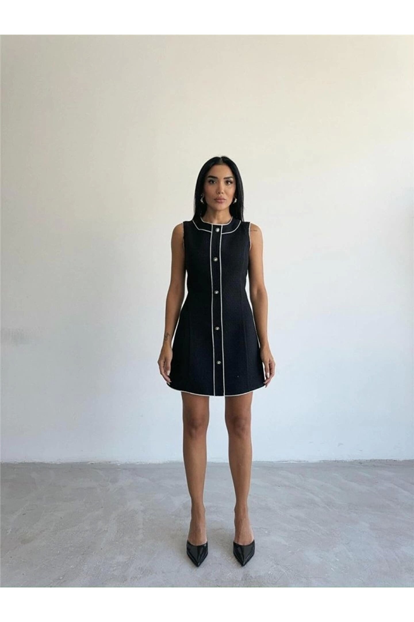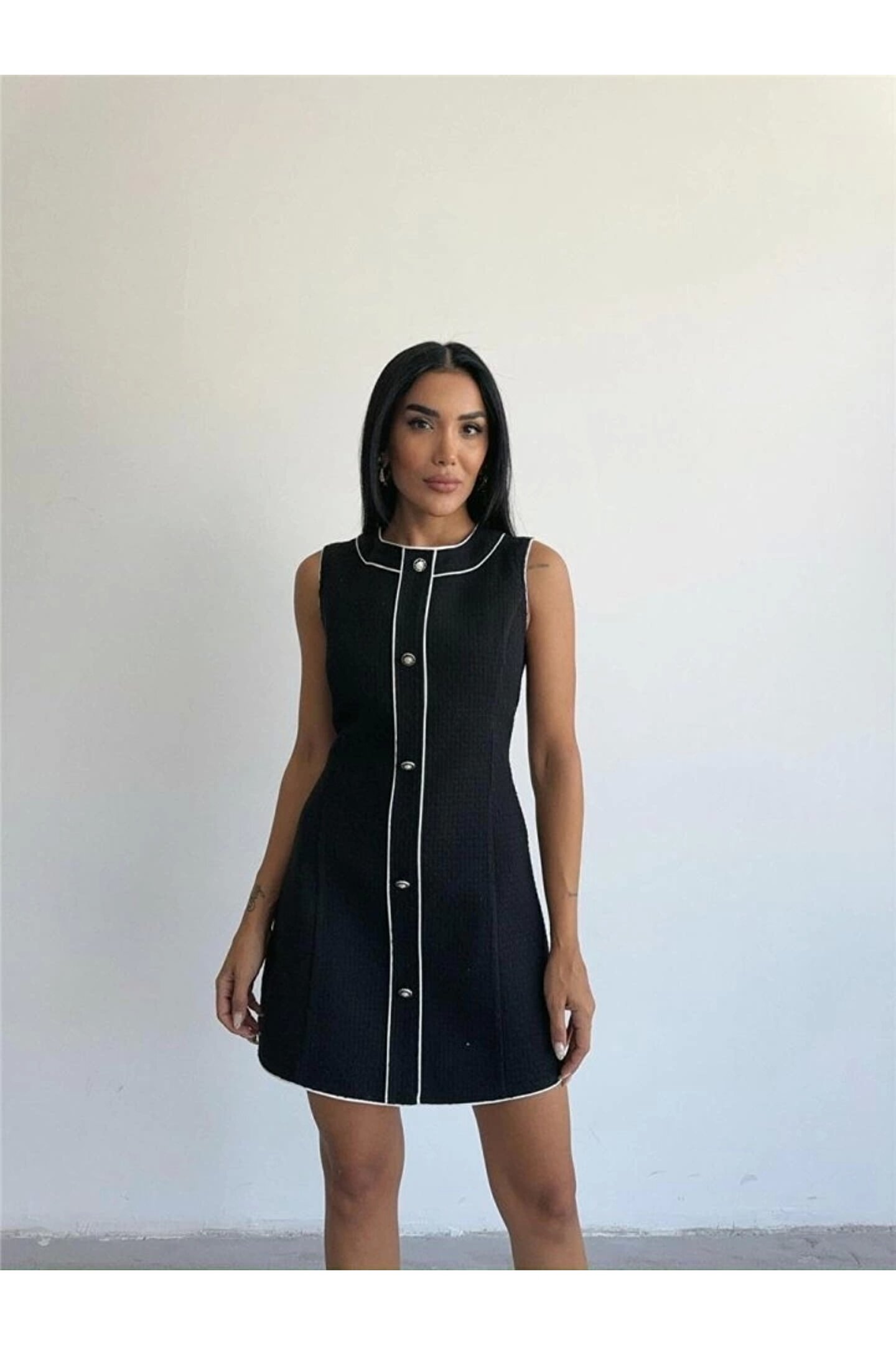 CHANEL KUMAŞ KISA ÖNDEN DÜĞMELİ ELBİSE - Siyah