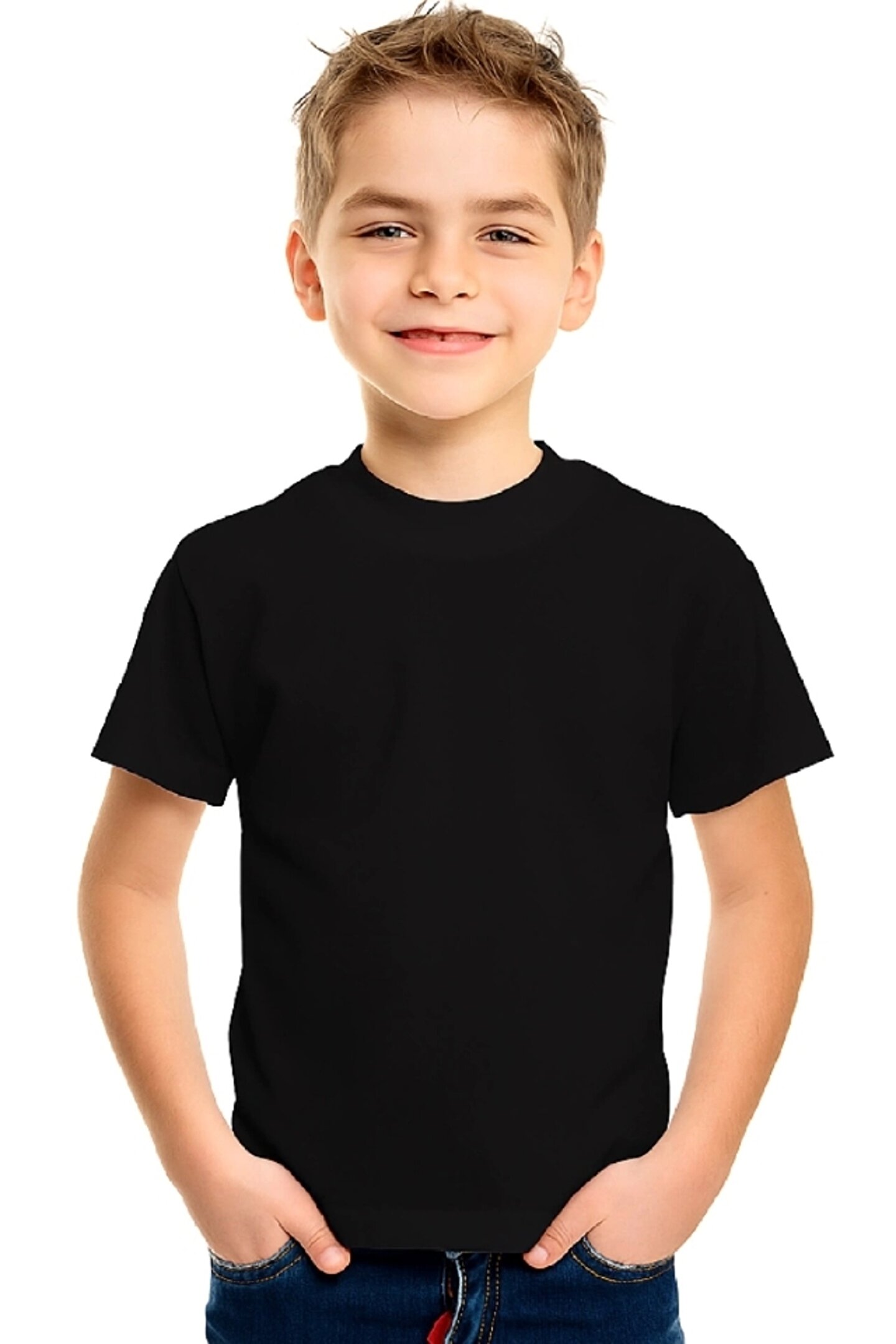 Çocuk Ön Arka Sizin Tasarımınız Basic Tshirt - Siyah