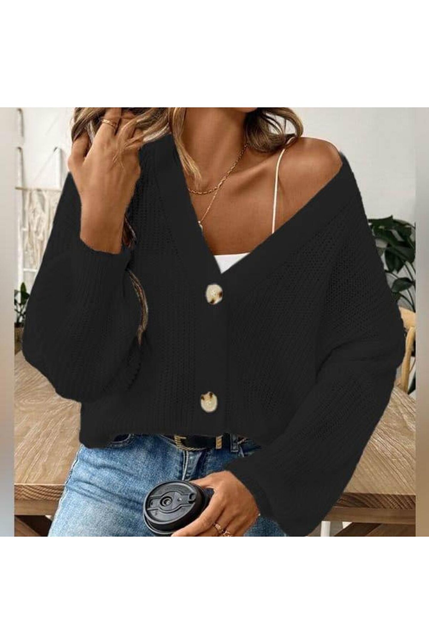 Düğme Detay Triko Bluz