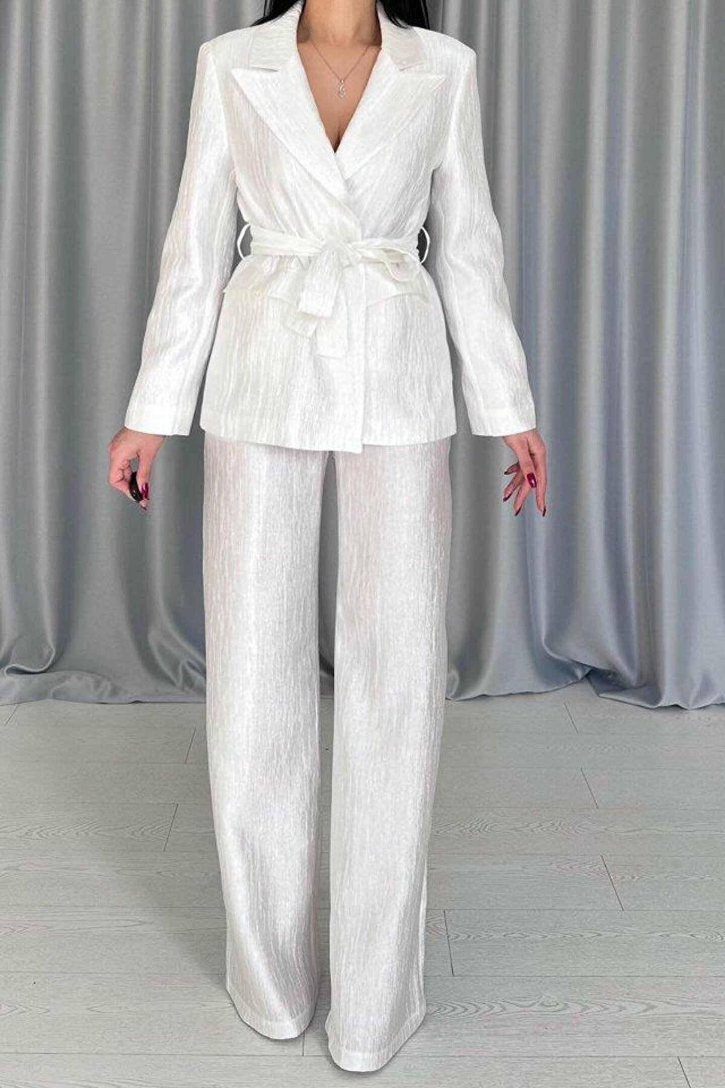 Ekru Beli Kuşaklı Ceket Ve Pantolon Parlak Takım Velmora Fashion - Kadın Giyimde Kalite ve Şıklığın Adresi! Velmora Fashion, kadın giyimde kalite, şıklık ve konforu bir araya getiren özel tasarımlar sunar.; Günlük giyimden özel davet kombinlerine kadar her tarza hitap eden koleksiyonlarımız, özenle seçilmiş yüksek kaliteli kumaşlar, rahat kesimler ve modern dokunuşlarla üretilir.; Her sezonun trendlerini yakından takip eden Velmora Fashion, zamansız ve modaya uygun parçalar ile stilinizi en iyi şekilde yansıtmanıza yardımcı olur.; Şık elbiselerden rahat sweatshirt lere, klasik gömleklerden spor kombinlere kadar geniş ürün yelpazemizle, hem günlük hem de özel anlarınız için mükemmel seçenekler sunuyoruz.; ✔ Birinci sınıf kumaş kalitesi ve üstün işçilik ✔ Moda trendlerine uygun modern ve şık tasarımlar ✔ Günlük, ofis ve özel günler için geniş koleksiyon ✔ Rahat, şık ve uzun ömürlü kadın giyim ürünleri Velmora Fashion ile tarzınızı en iyi şekilde tamamlayın! Kadın giyimde kaliteyi ve şıklığı bir arada sunan koleksiyonlarımızı keşfedin!