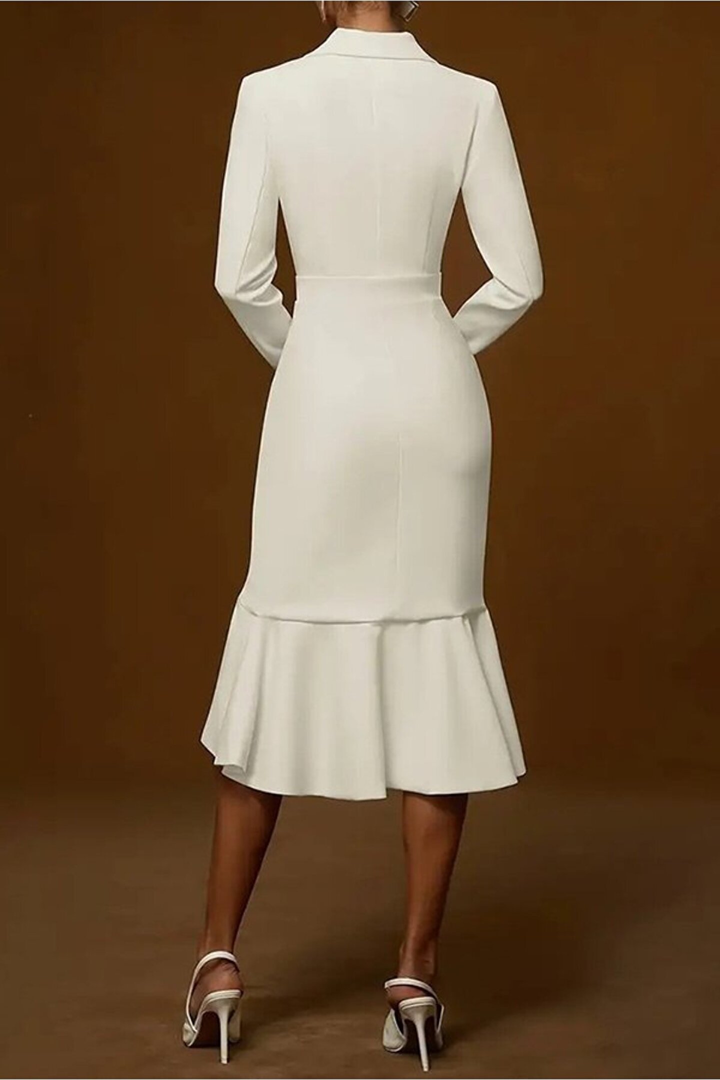 Kadın Uzun Kollu Yakalı Belden Oturtmalı Midi Ithal Krep Elbise