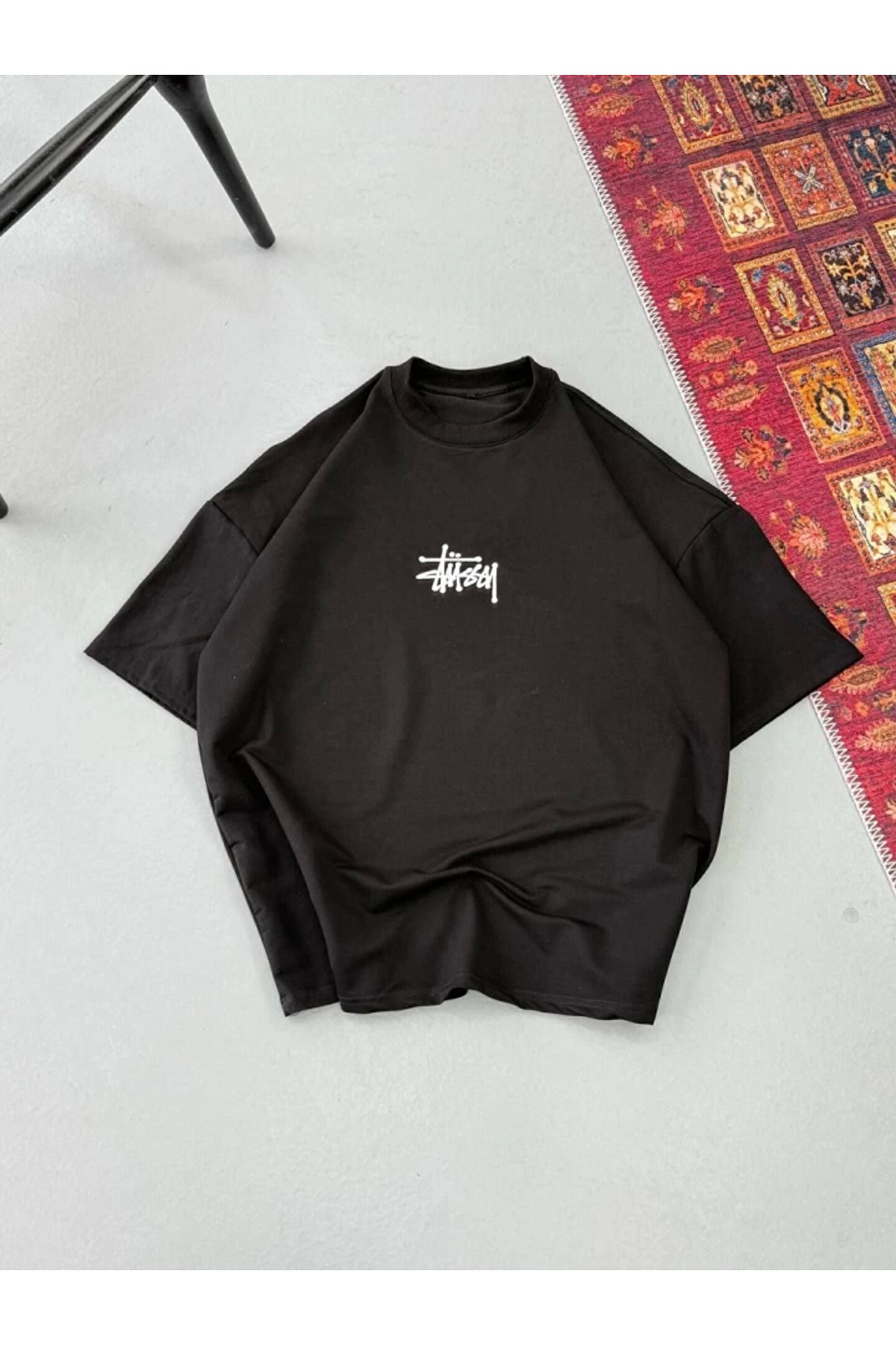 Erkek Baskılı Oversize T-shirt - Siyah