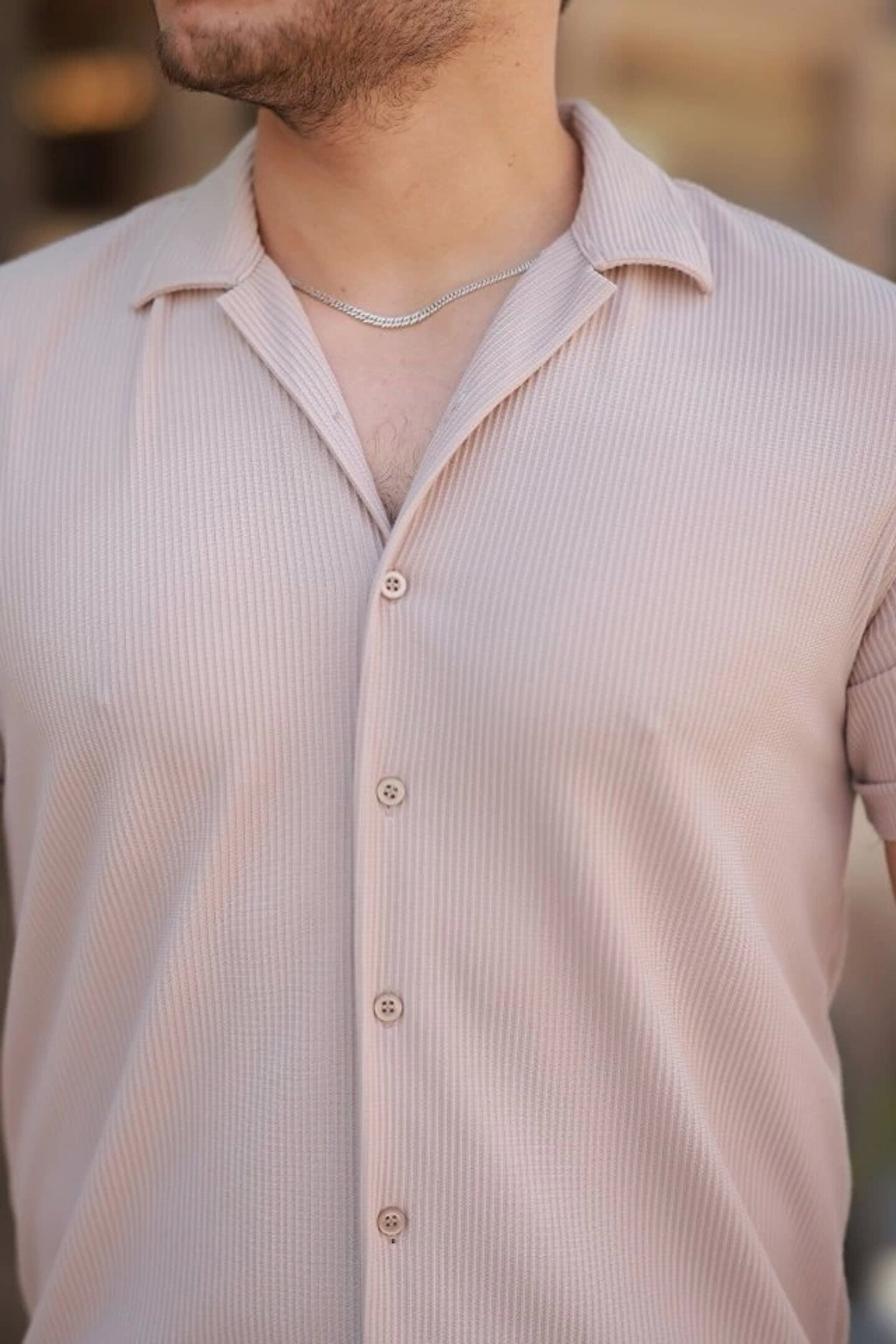 Erkek Ottoman Kumaş Apaj Yaka Kısa Kollu Gömlek