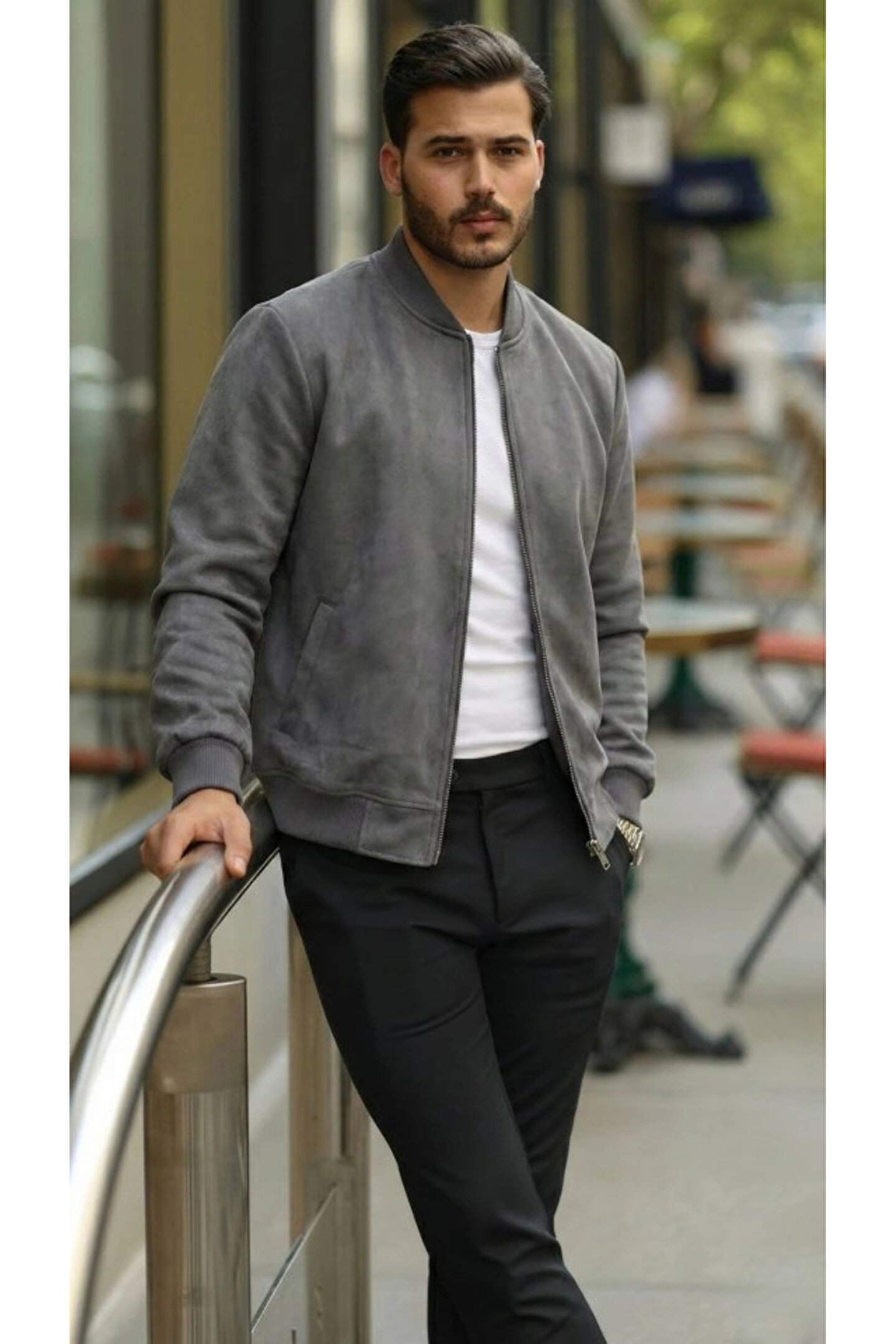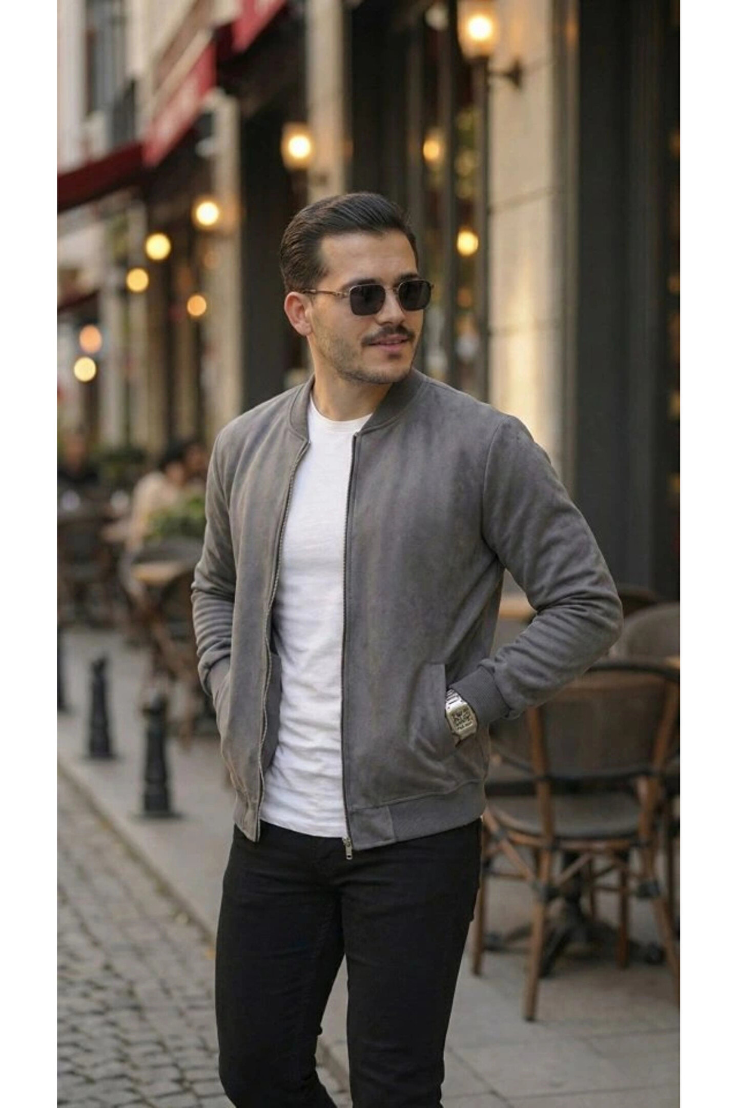 Erkek Scuba Süet Kumaş Bomber Hırka