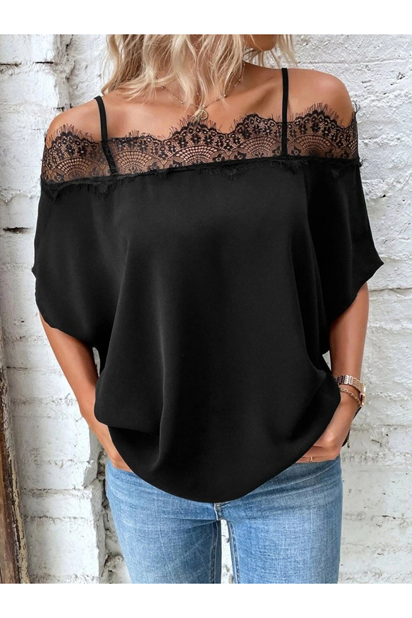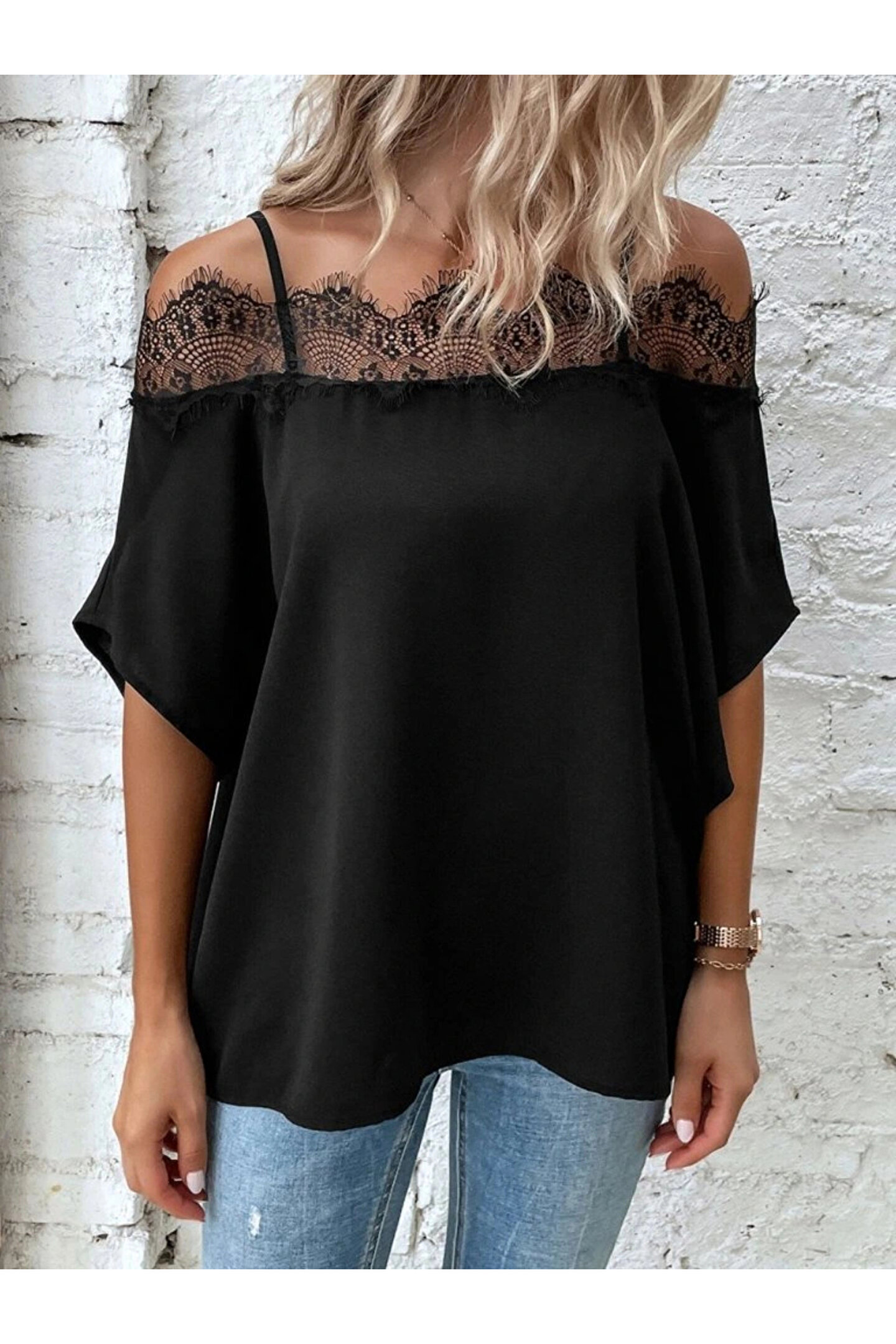 Silerra Kadın Askılı Dantel Janjan Krep Bluz