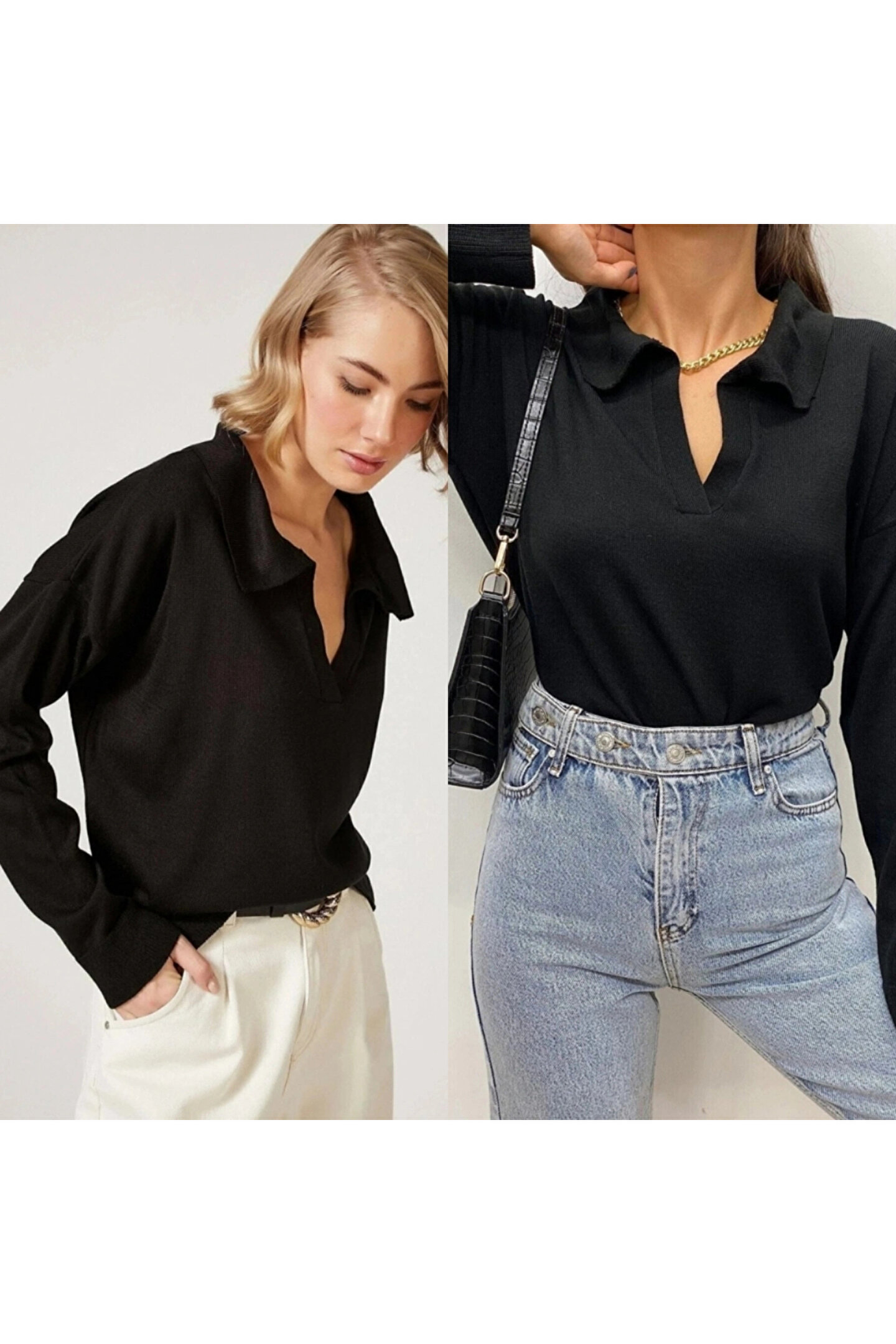 Kadın Beyaz Uzun Kollu Yakalı Triko Bluz