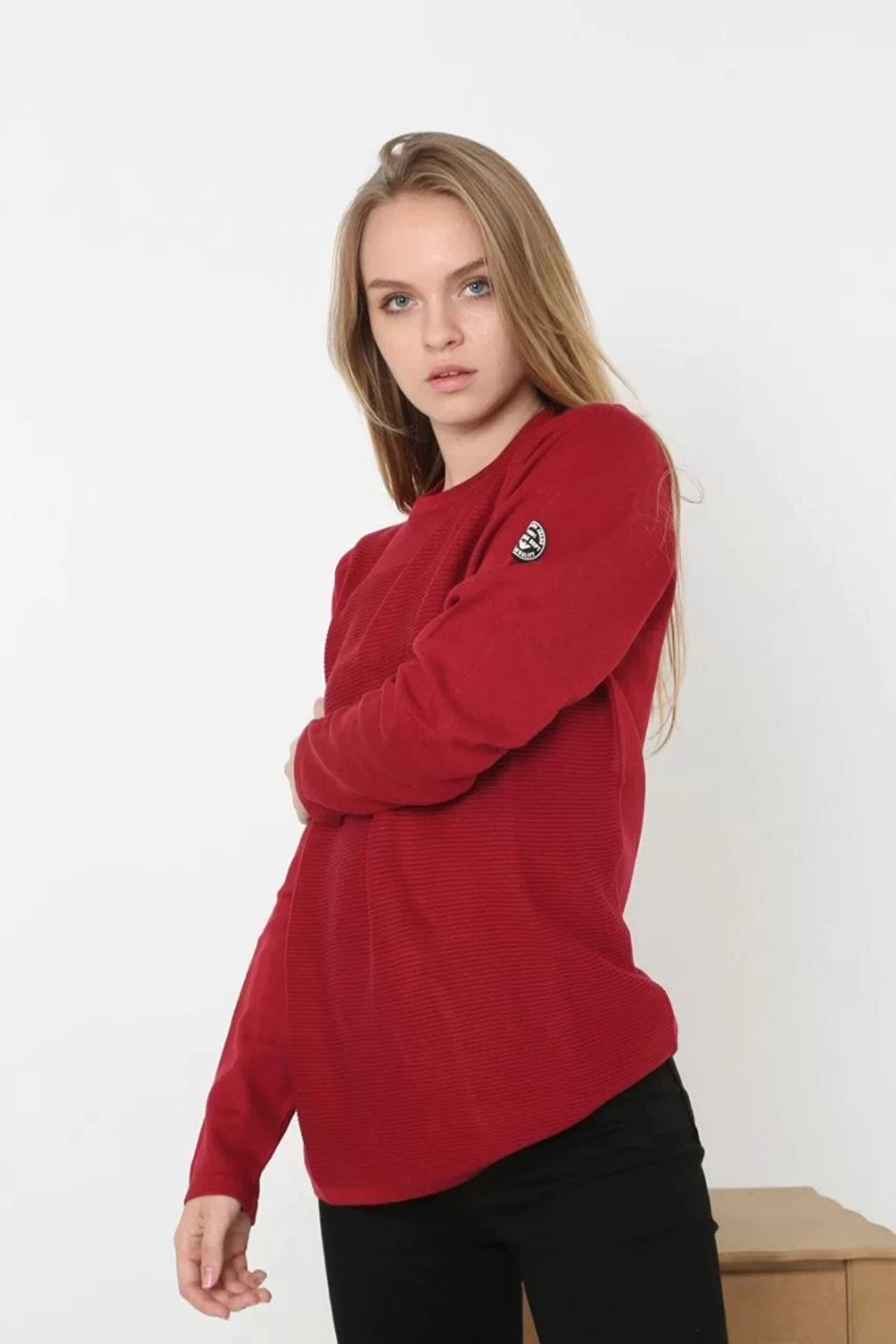 Silerra Kadın Biskilet Yaka Kolu Armalı - Kırmızı