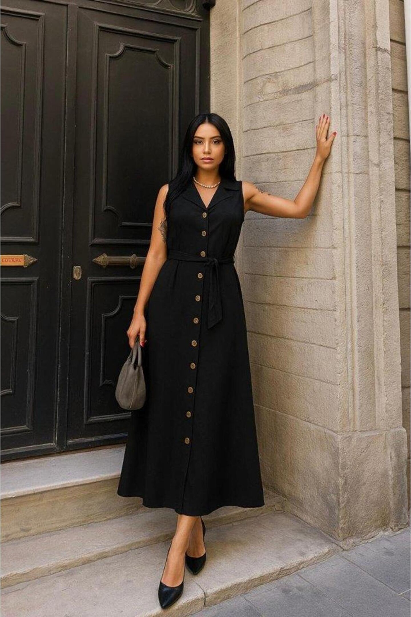 Silerra Kadın Düğme Detay Kuşak Dahil Elbise