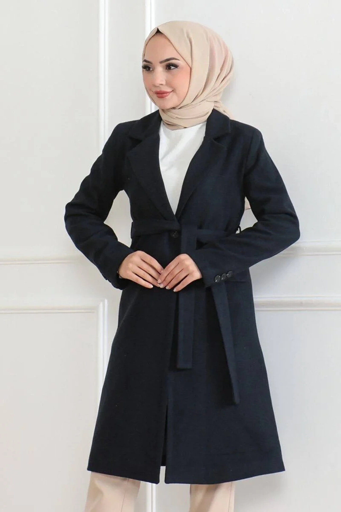 Silerra Kadın Düğmeli İçi Astarlı Kaşmir Kaşe Kaban - Lacivert