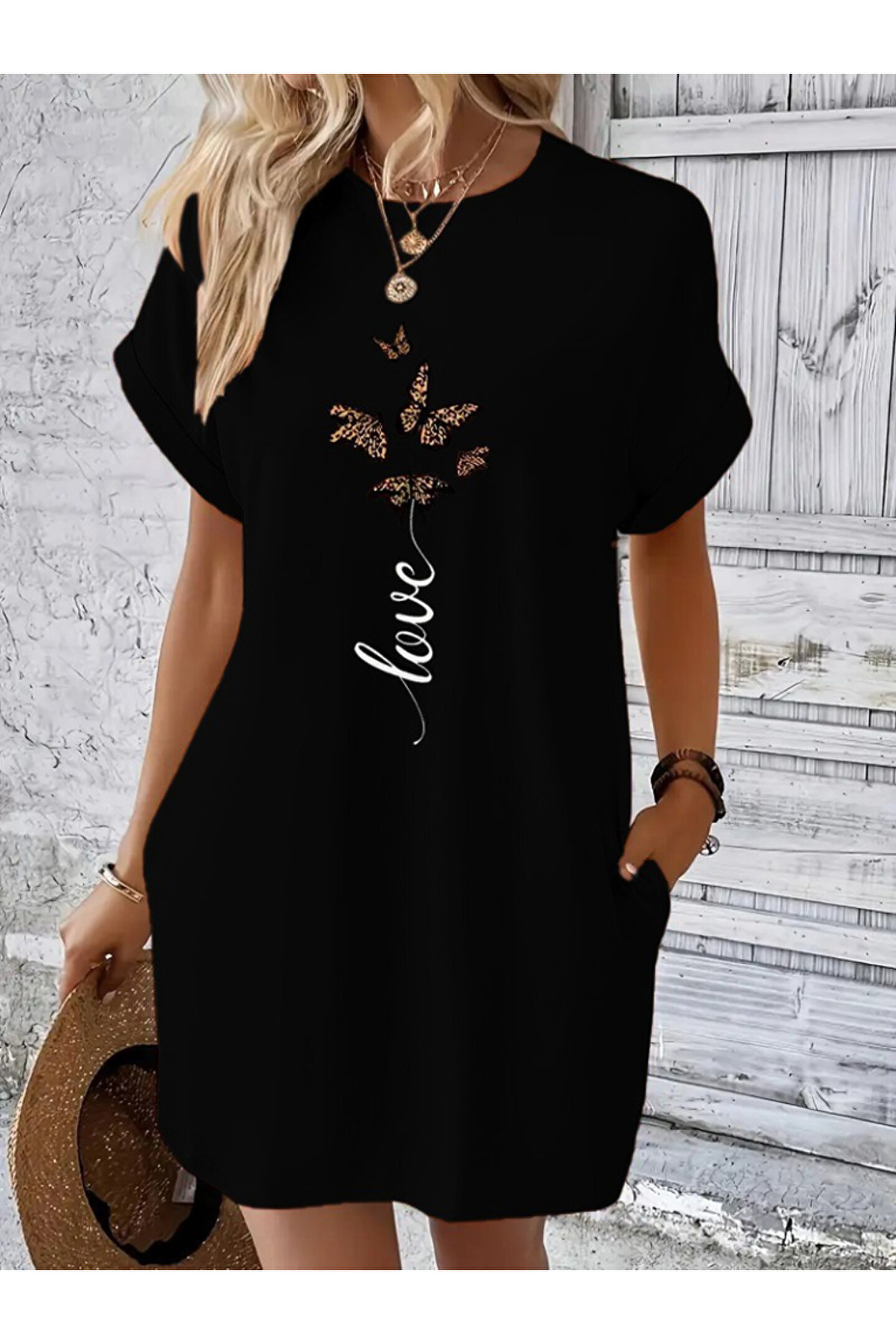 Kadın Kısa Kollu Bisiklet Yaka Cepli Kelebek Baskılı Viskon Elbise Siparişleriniz özenle bir şekilde hazırlanılıp 24 saat içerisinde kargoya verilmektedir.; kargo firması olarak ile çalışmaktayız.; siparişinizi oluşturduktan sonra 1-4 gün içerisinde ürünleriniz elinize ulaşmış olacaktır.; Özel ve sıradışı tasarım ürünlerimiz, yaşamınıza benzersiz bir çekicilik ve tarz katacak.; Günlük hayatta giyim üzeri vücut aksesuarı gibi kullanabileceğiniz özel parçalar sunuyoruz.; Bu ürünlerle kendinizi özgürce ifade edebilir, kişisel tarzınızı ön plana çıkarabilirsiniz.; Her biri özenle seçilmiş, yüksek kaliteli malzemelerle üretilmiş olan tasarımlarımız, özel yaşamınızda da dikkat çekici detaylar sunar.; Göz alıcı ve çekici olmalarının yanı sıra, konfor ve kullanışlılık da sağlamak için özen gösteriyoruz.; Gündelik hayatta şıklığınızı tamamlamanın yanı sıra özel anlarınızda da kendinizi özel hissetmenizi sağlayacak ürünlerimiz, sizin tarzınızı ve zevkinizi yansıtmak için özel olarak tasarlanmıştır.; Asmirayı keşfedin ve tarzınızı yansıtan özel parçalarla kendinizi ifade etmenin keyfini çıkarın!