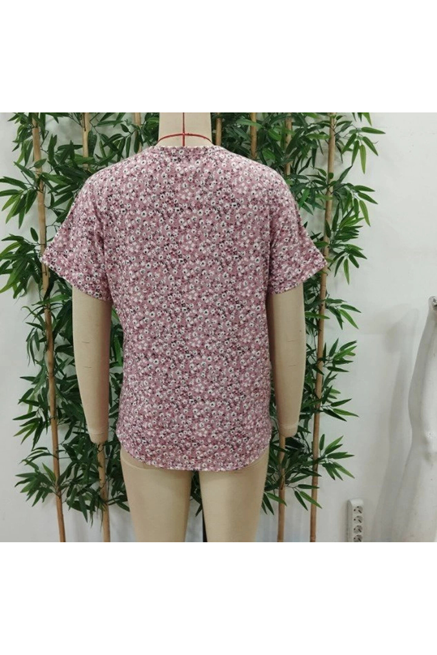 Kadın Kısa Kollu çentikli V Yaka Ve Düğme Detaylı çiçek Desenli Süprem Bluz Modelin Ölçüleri: Boy:165, Kg:55, Göğüs:90, Bel:72, Kalça: 100 Modelin üzerindeki ürün M/38 bedendir Trendleri belirleyen kadın giyim markası velmorafashion'a hoşgeldiniz! VelmoraFashion, kadınların tarzlarını ifade etmelerine ve güçlü bir duruş sergilemelerine olanak tanıyan bir markadır.; 2018 yılından bu yana sektörde varlığını sürdüren firmamız, yenilikçi tasarımları ve kaliteli ürünleriyle dikkat çekiyor.; VelmoraFashion olarak amacımız, her kadının kendine özgü tarzını yansıtabileceği, güvenilir ve şık giyim seçenekleri sunmaktır.; Koleksiyonlarımızda her zevke hitap eden parçaları bulabilirsiniz.; Günlük hayatta rahatlıkla tercih edilebilecek şık elbiselerden iş görüşmelerinde stilinizi tamamlayacak takım elbiselere, spor giyimden abiye modellere kadar geniş bir ürün yelpazemiz bulunmaktadır.; Tasarımlarımızı oluştururken moda trendlerini yakından takip ediyor, farklı tarzlara ve bedenlere uygun seçenekler sunmaya özen gösteriyoruz.; Aynı zamanda kalite ve dayanıklılık da önceliklerimiz arasındadır.; Her parça, titizlikle seçilen kumaşlar ve dikkatle işlenen detaylarla özenle üretilmektedir.; Müşteri memnuniyeti bizim için en önemli önceliktir.; Profesyonel müşteri hizmetleri ekibimiz, her adımda size yardımcı olmak ve alışveriş deneyiminizi en üst düzeye çıkarmak için buradadır.; Siz değerli müşterilerimizin geri bildirimleri, bizi daha da ileriye taşımak için önemli bir kaynaktır.; Velmora Fashion olarak, sadece giyimde değil, aynı zamanda kadınların güçlendirilmesi ve kendilerini ifade etmeleri konusunda da bir misyon taşıyoruz.; Her kadının kendi tarzını keşfetmesine ve kendine güvenle adım atmasına yardımcı olmak için buradayız.; VELMORAFAShion'da her detayı düşünülmüş, şıklığı ve rahatlığı bir arada sunan parçalarla dolu koleksiyonlarımızı keşfetmek için sizi mağazamıza bekliyoruz.; Siz de ailemize katılın ve tarzınızı keşfedin!
