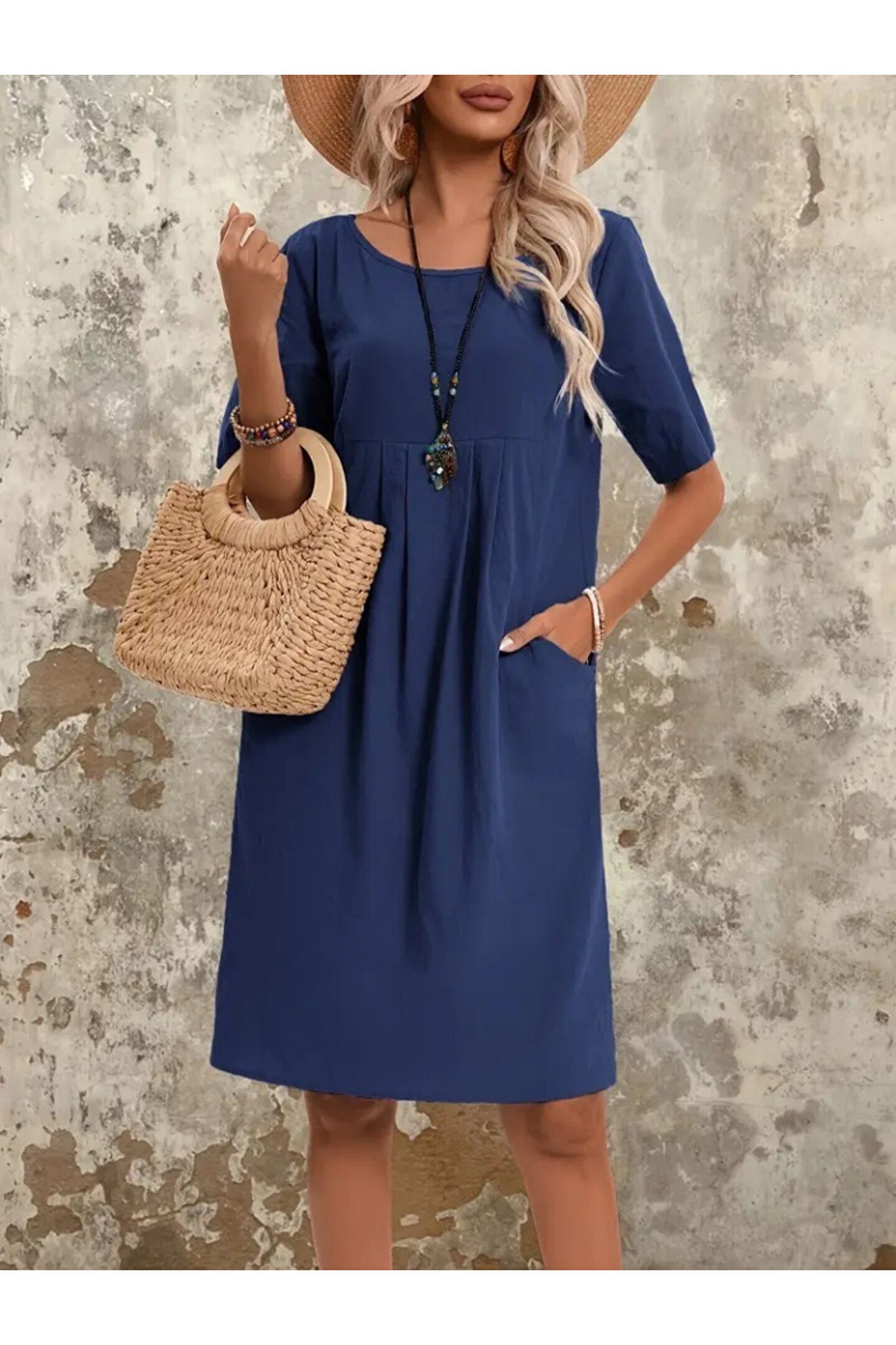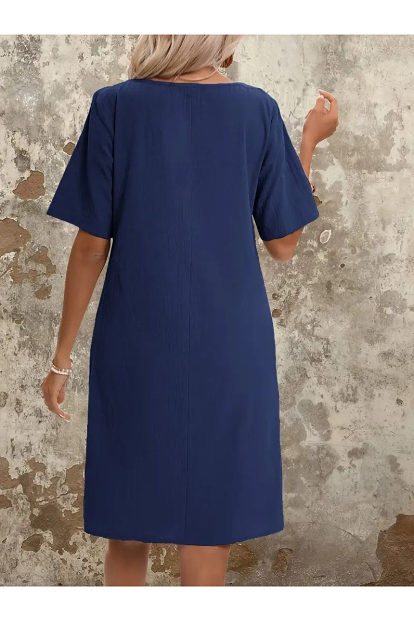 Kadın Kısa Kollu Yakası Açık önden Büzgülü Cep Detaylı Viskon Iki Iplik Elbise