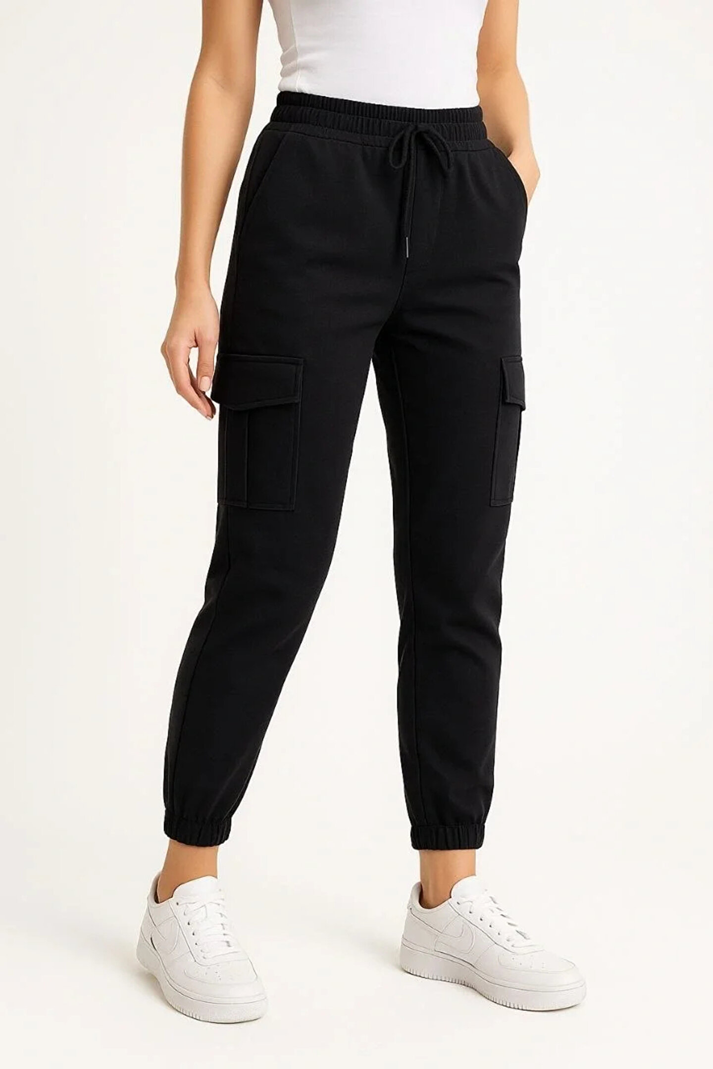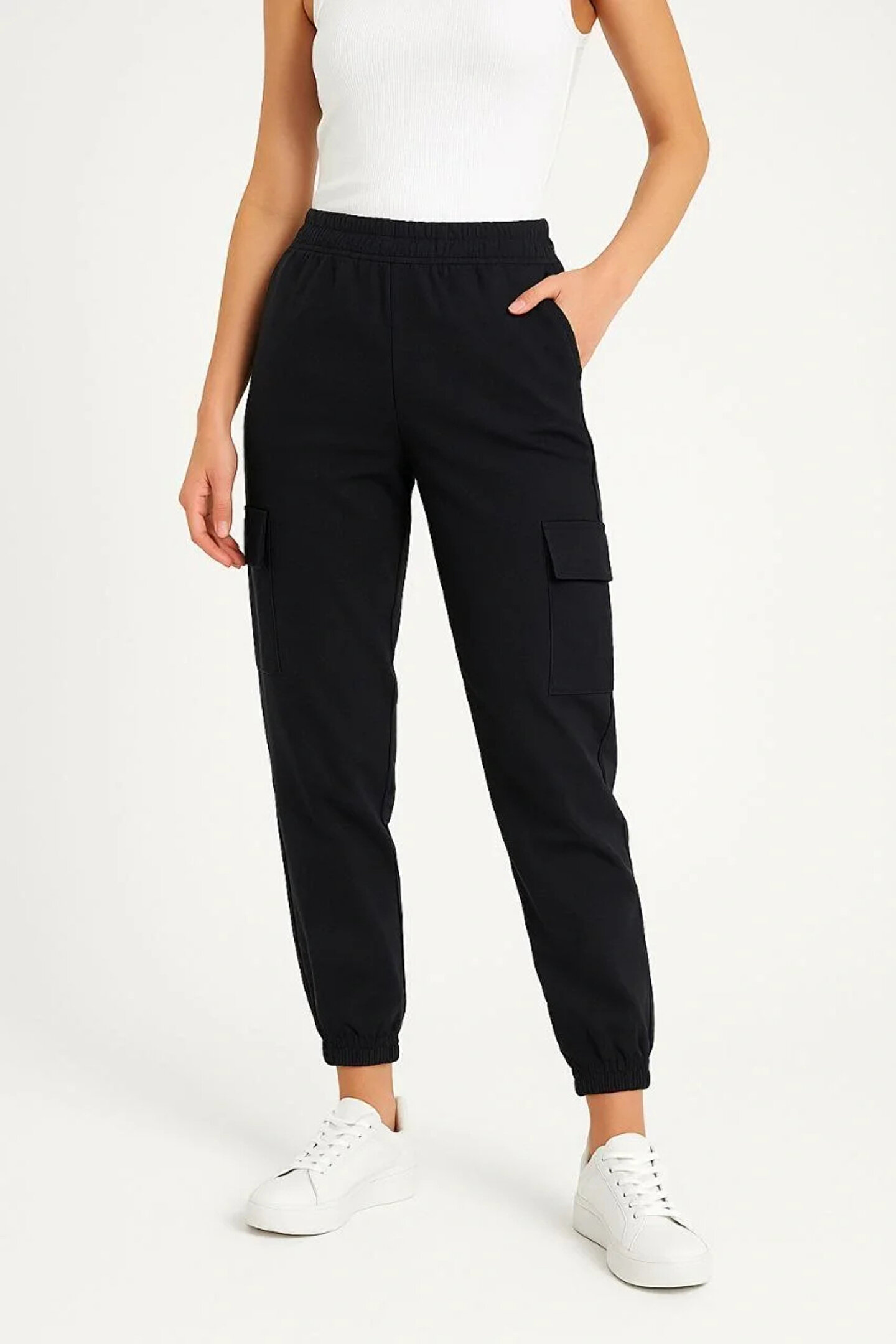 Silerra Kadın Siyah Jogger Eşofman Altı Rahat Kalıp, Kargo Cepli, Lastikli Paça, Günlük Spor Pantolon - Siya