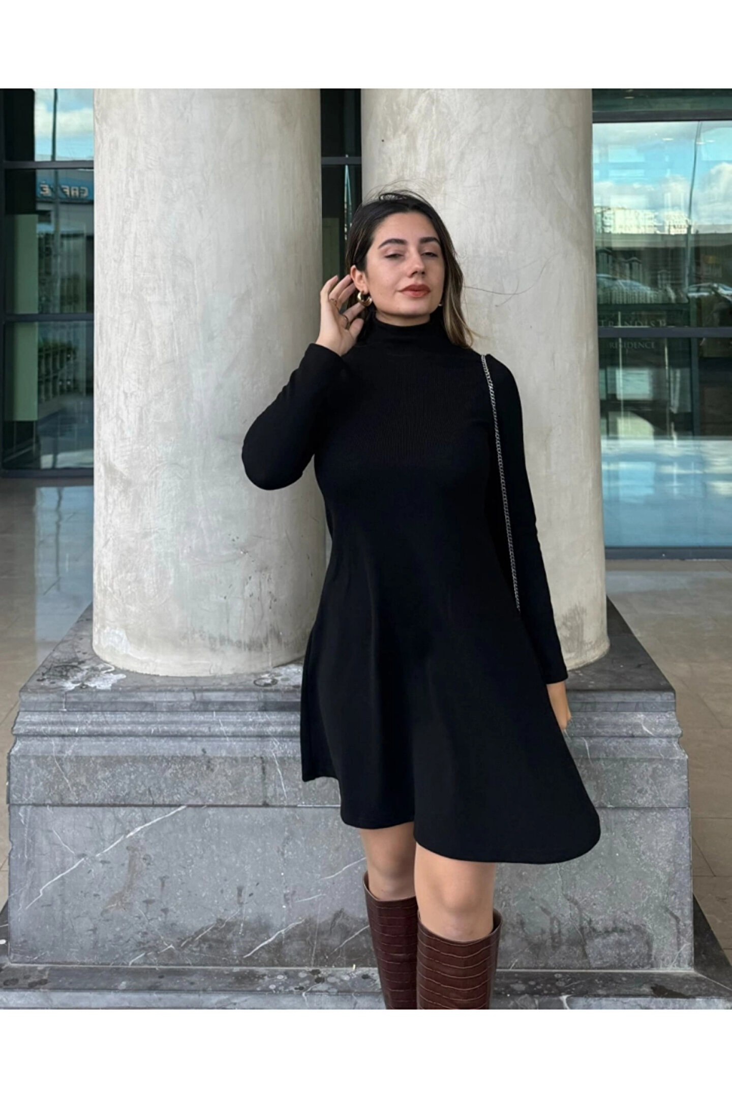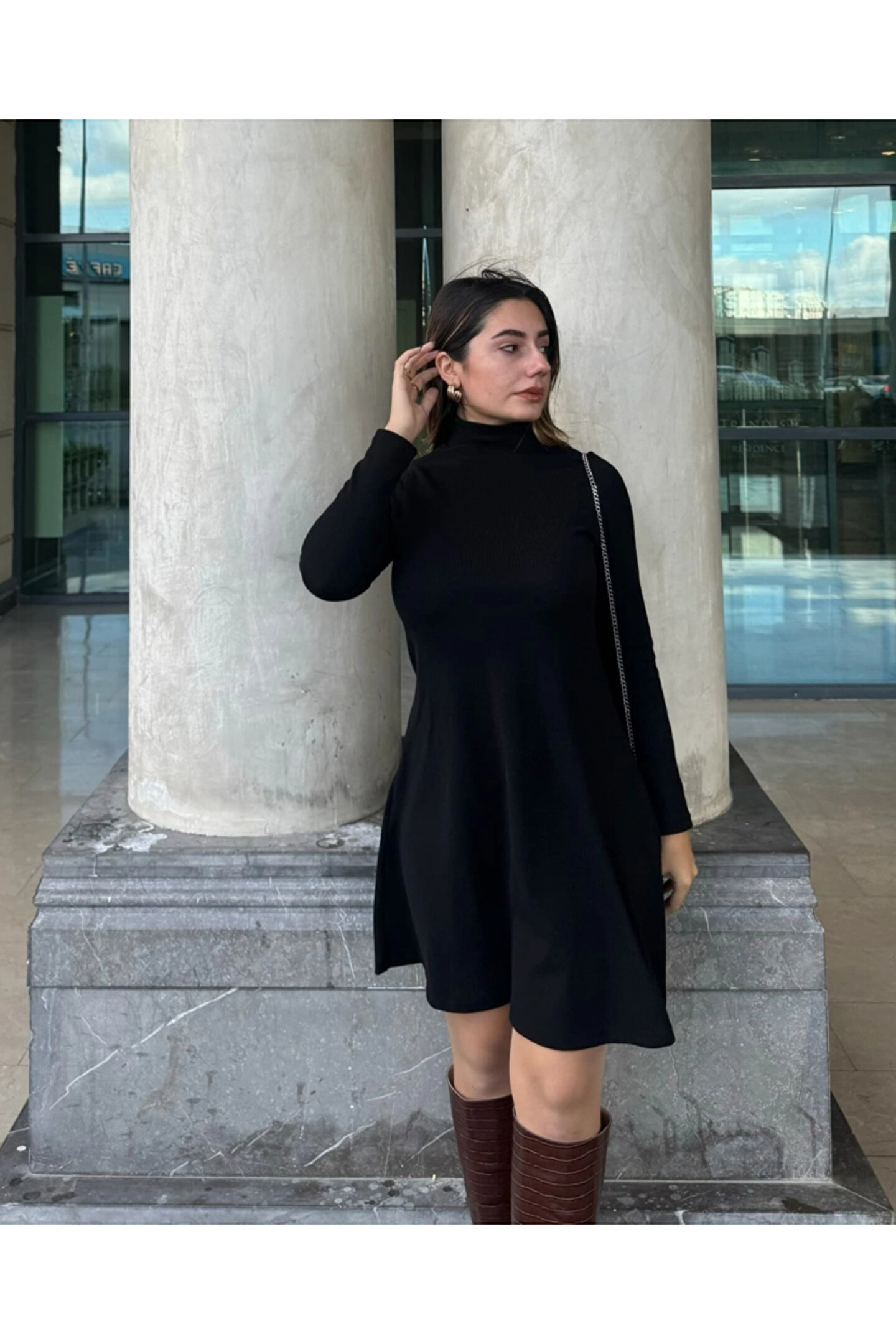 Silerra Kadın Uzun Kollu Balıkçı Yaka Salaş Kusa Akrilik Elbise