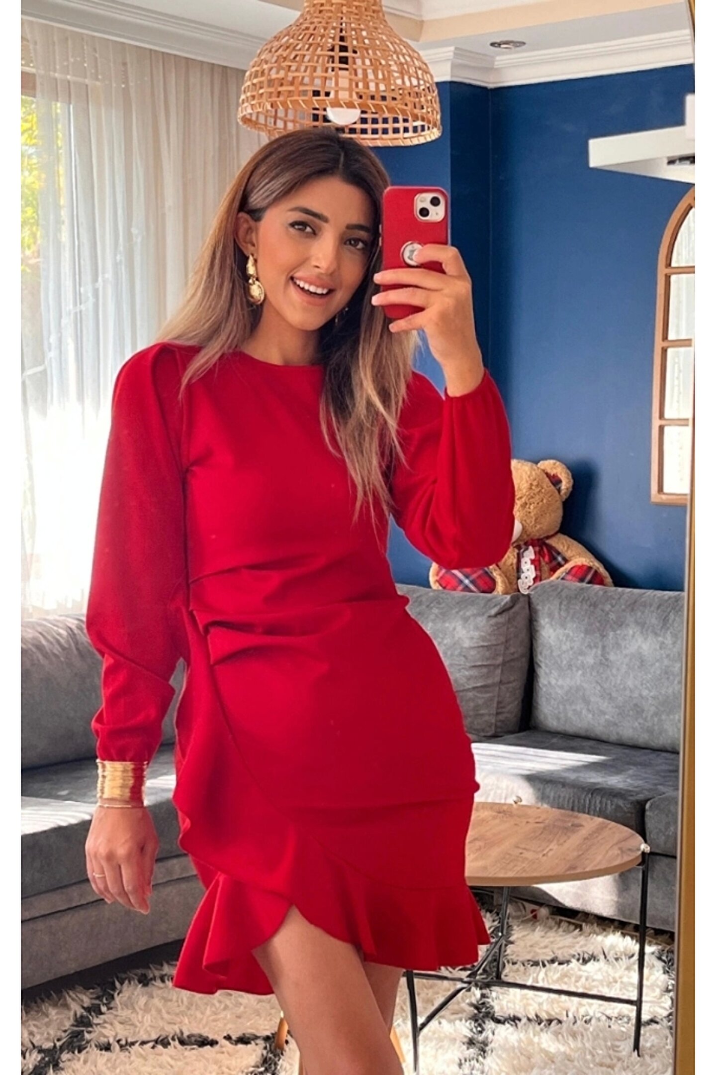Kadın Uzun Kollu Bisiklet Yaka önden Volanlı Ithal Krep Elbise