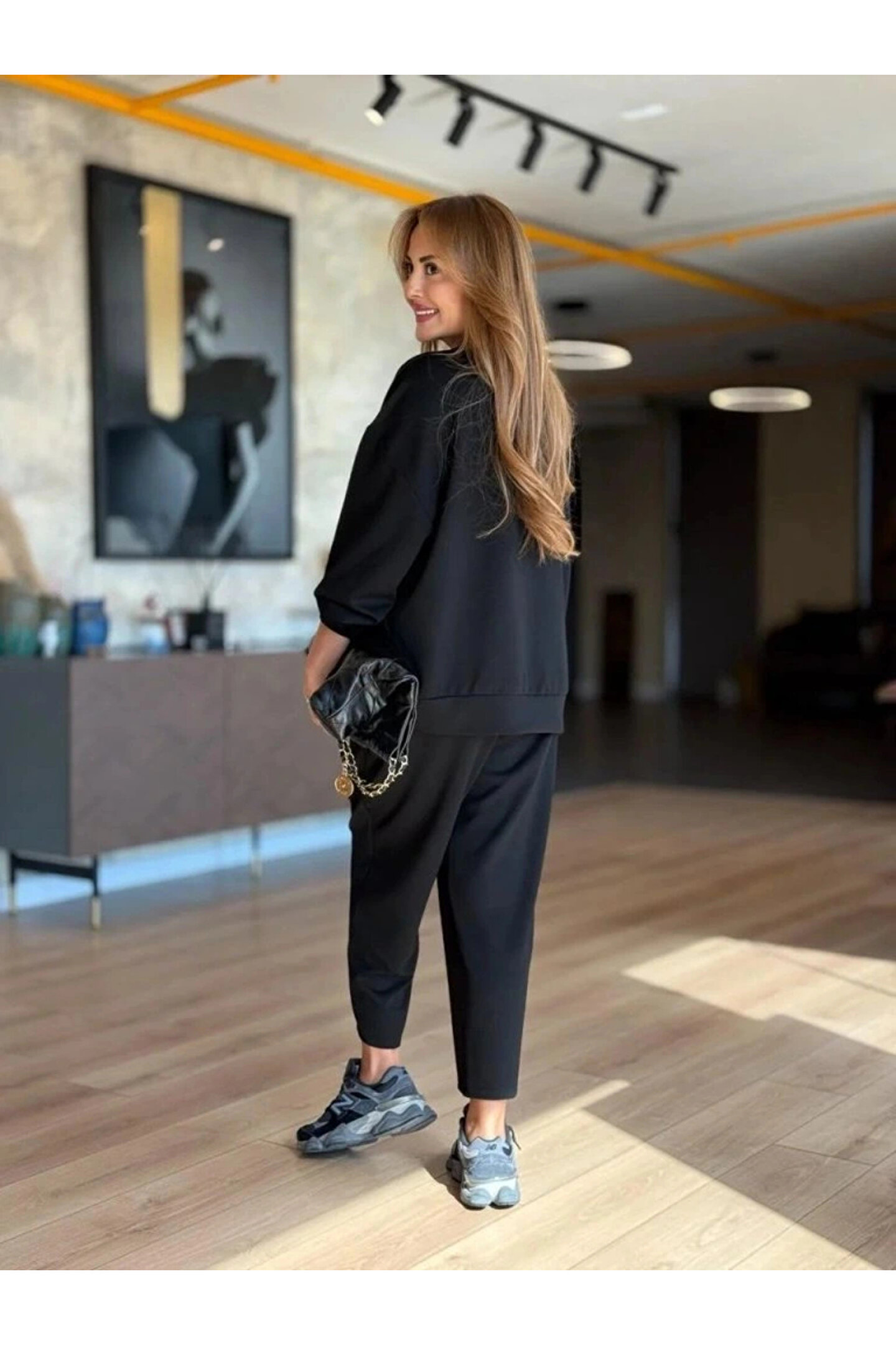 Kadın Uzun Kollu Bisiklet Yaka Viskon Iki Iplik Bluz Ve Pantolon Ikili Takım