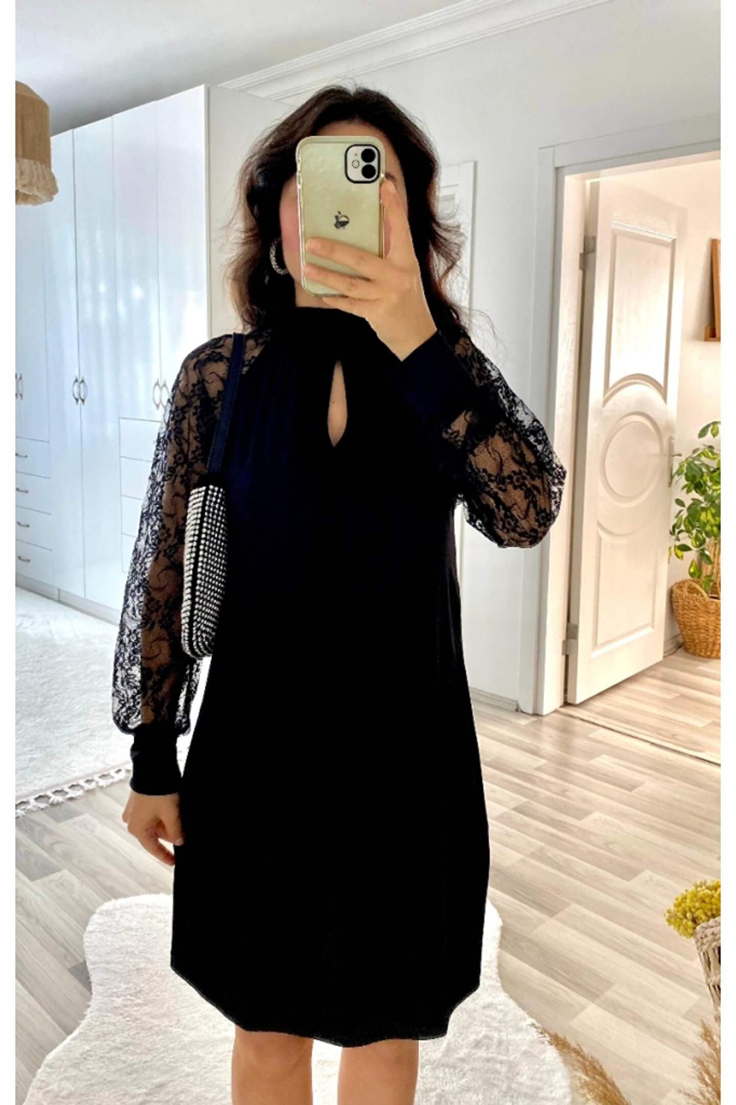 Kadın Uzun Kollu Damla Detaylı Sandy Mini Elbise