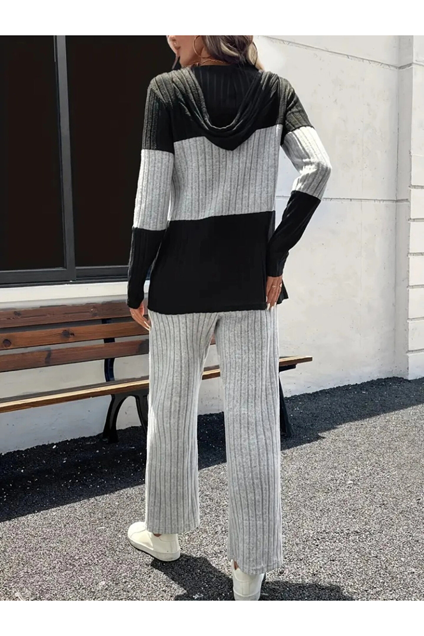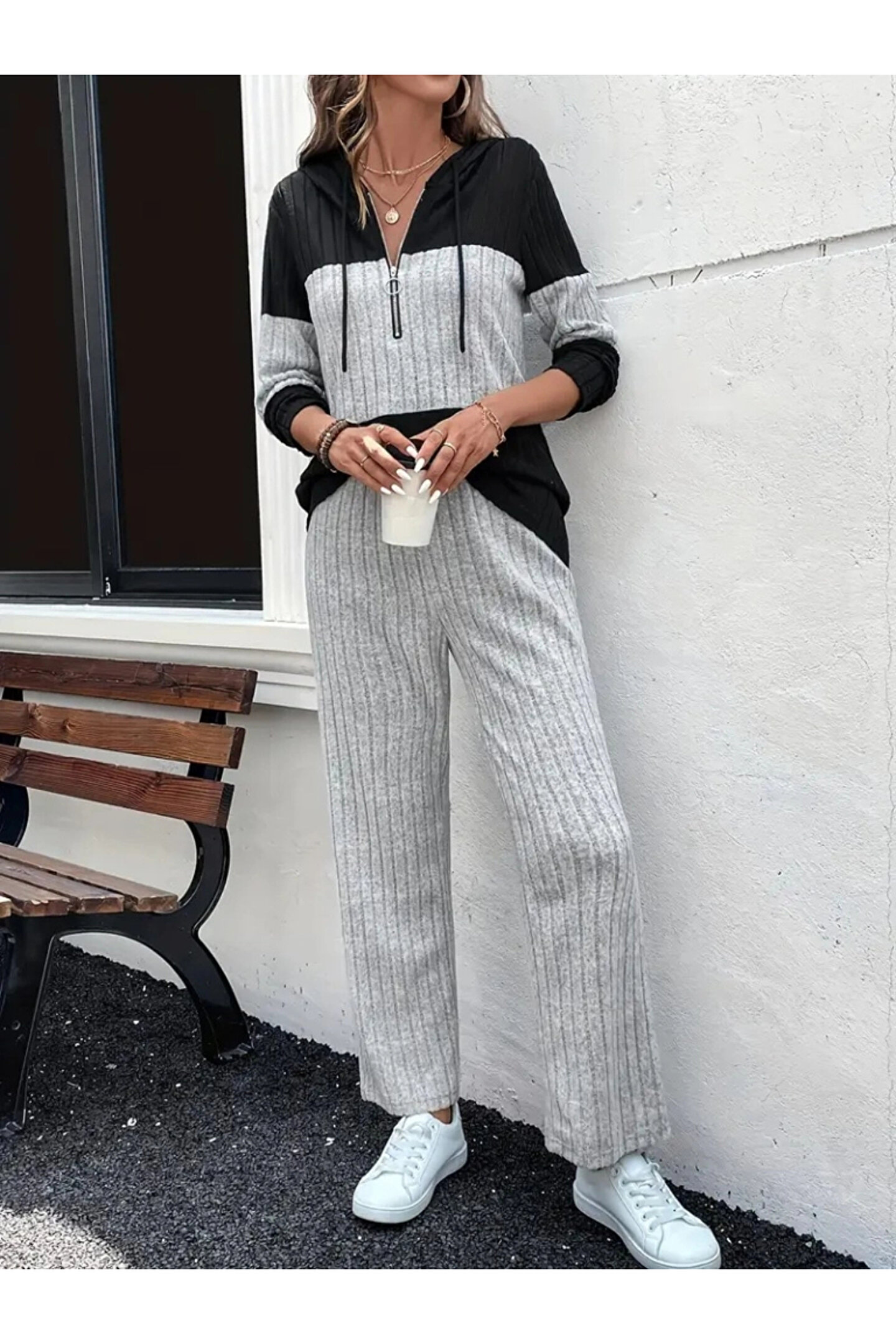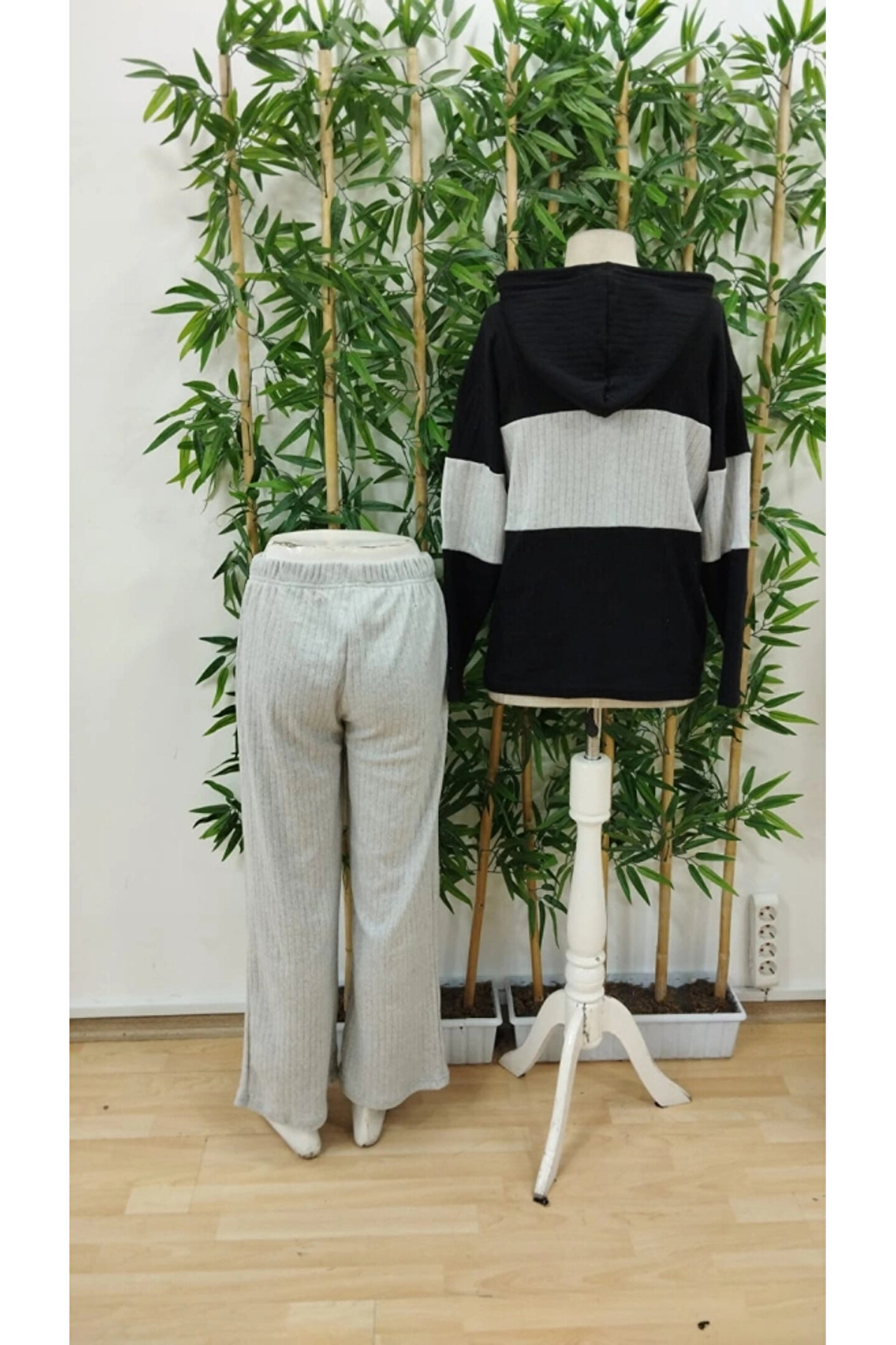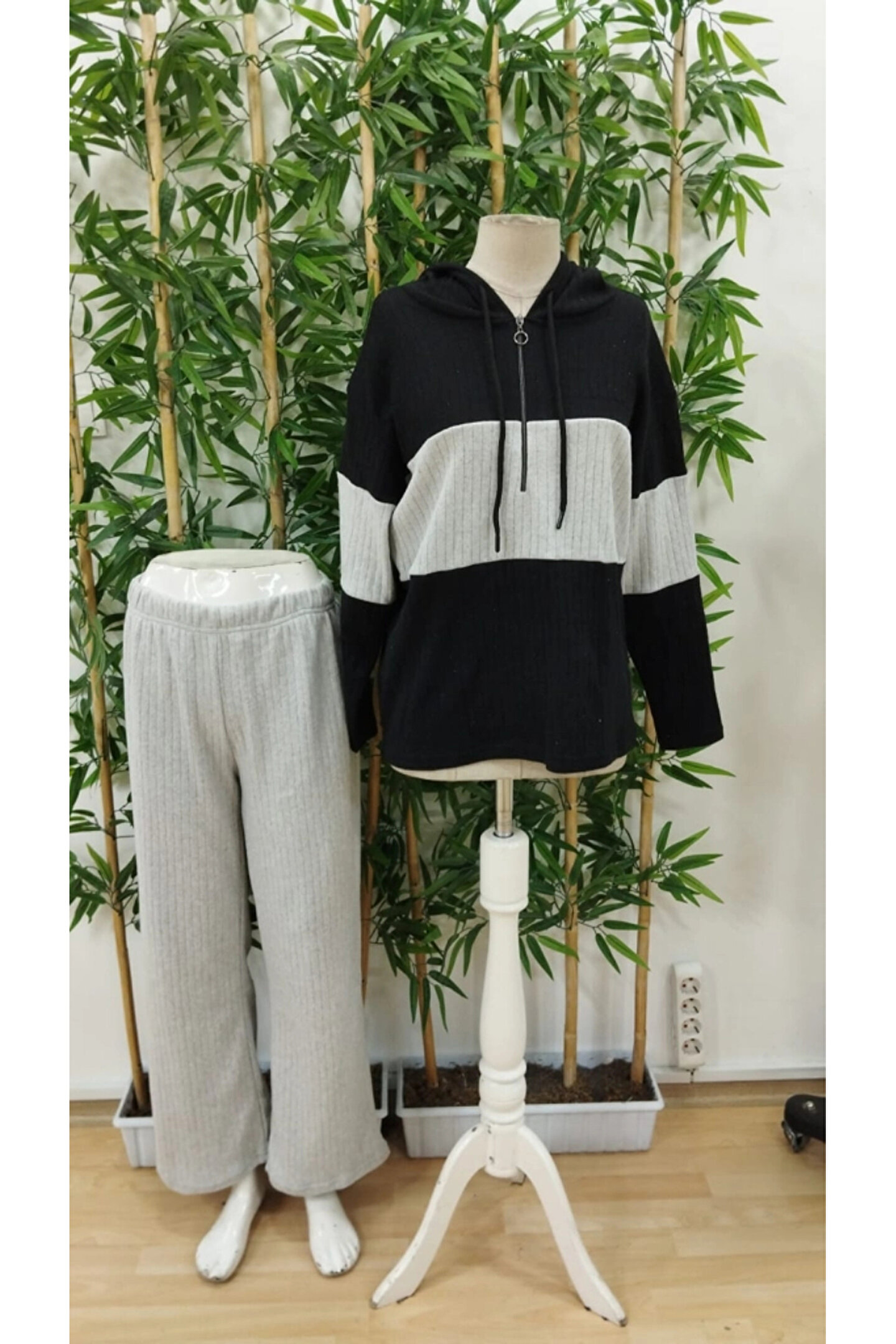Kadın Uzun Kollu Kapşonlu önden Fermuarlı şardonlu Kaşkorse Bluz Ve Pantolon
