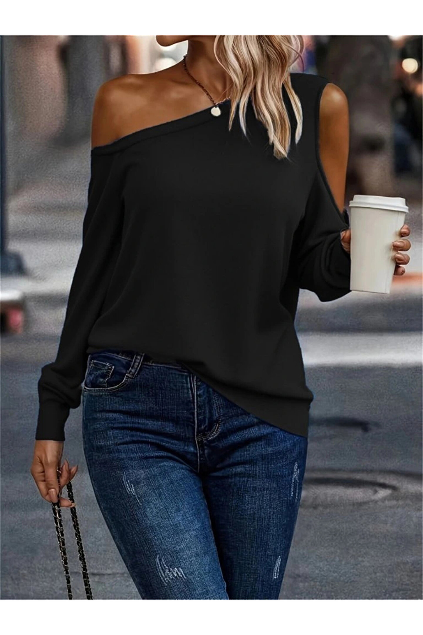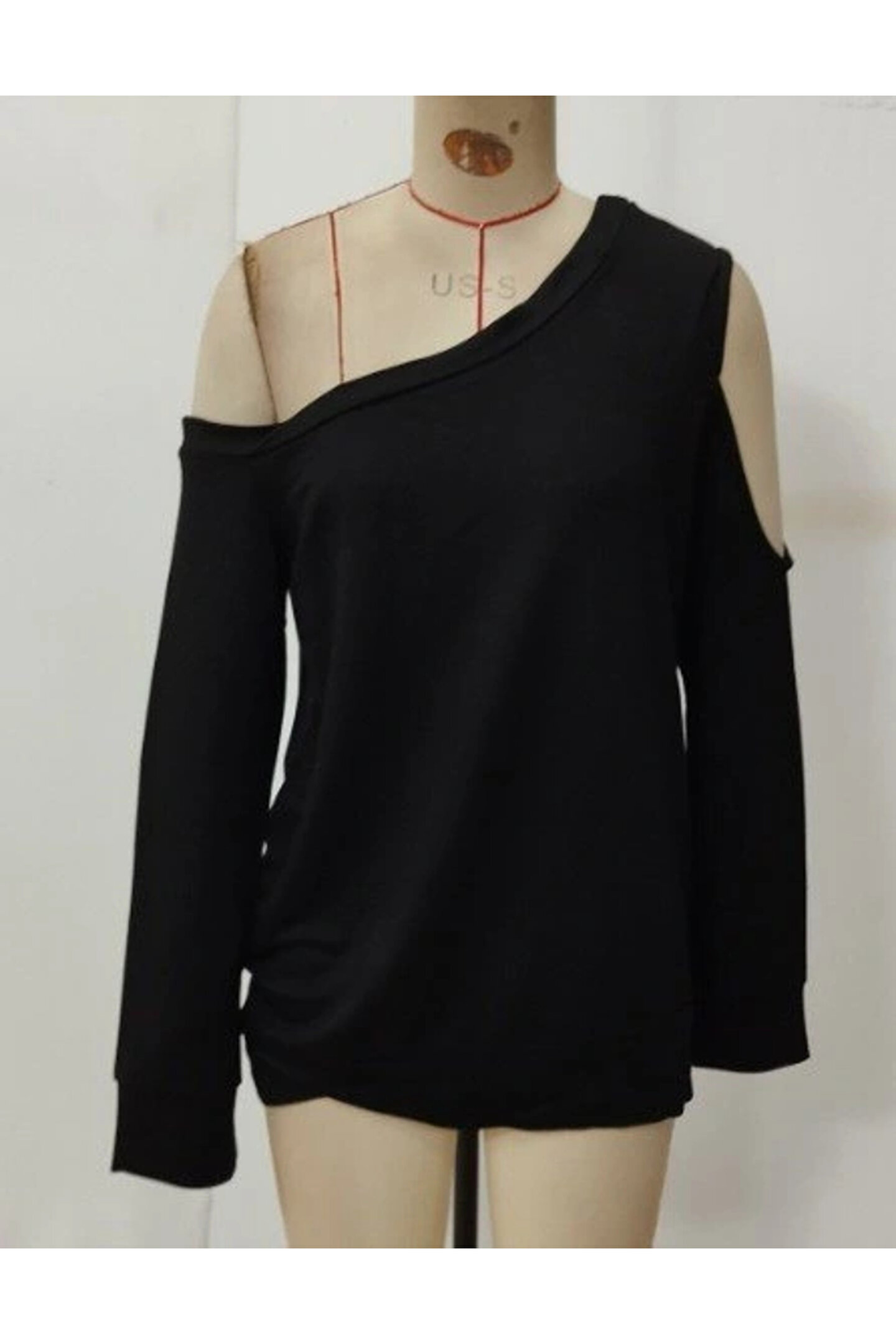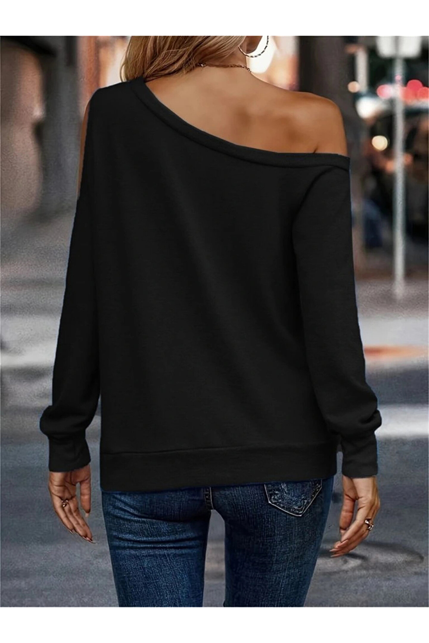 Kadın Uzun Kollu Omuzlardan Açık Salaş Viskon Iki Iplik Bluz
