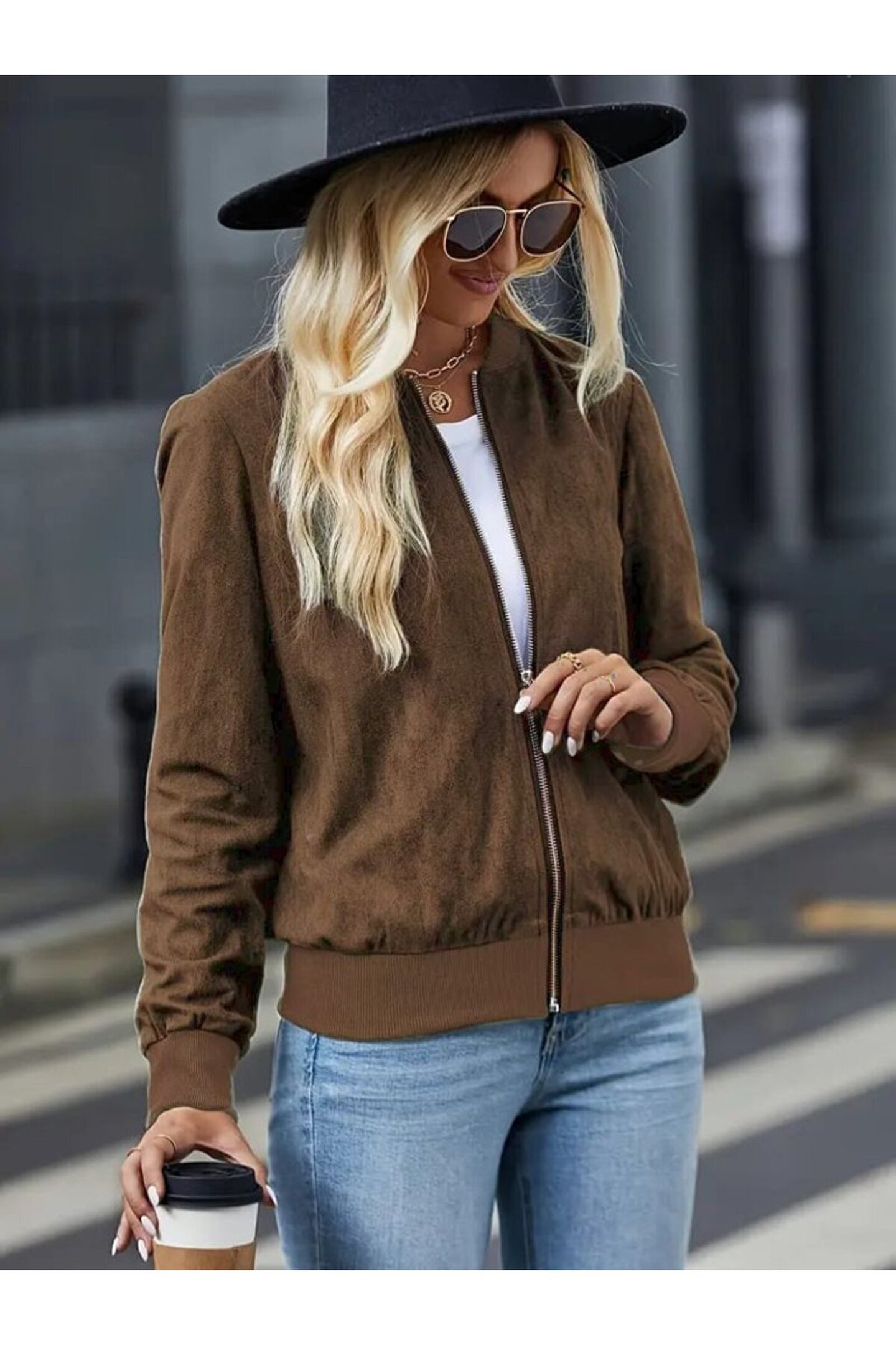 Kadın Uzun Kollu önden Fermuarlı Süet Ceket